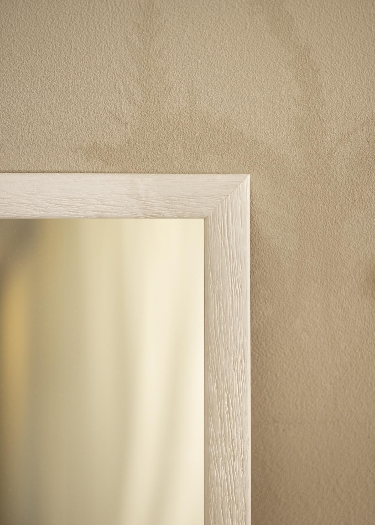 Rammen på Speil Cornwall Hvit er laget av ayostre, noe som gir et autentisk og holdbart produkt. Med en ramme som er 23 mm bred og en dybde på 13 mm, har speilet en smal profil som bidrar til et moderne og stilrent inntrykk. Den matte finishen demper lysrefleksjoner, noe som gjør at speilet harmoniserer godt med øvrig innredning uten å ta over rommet.