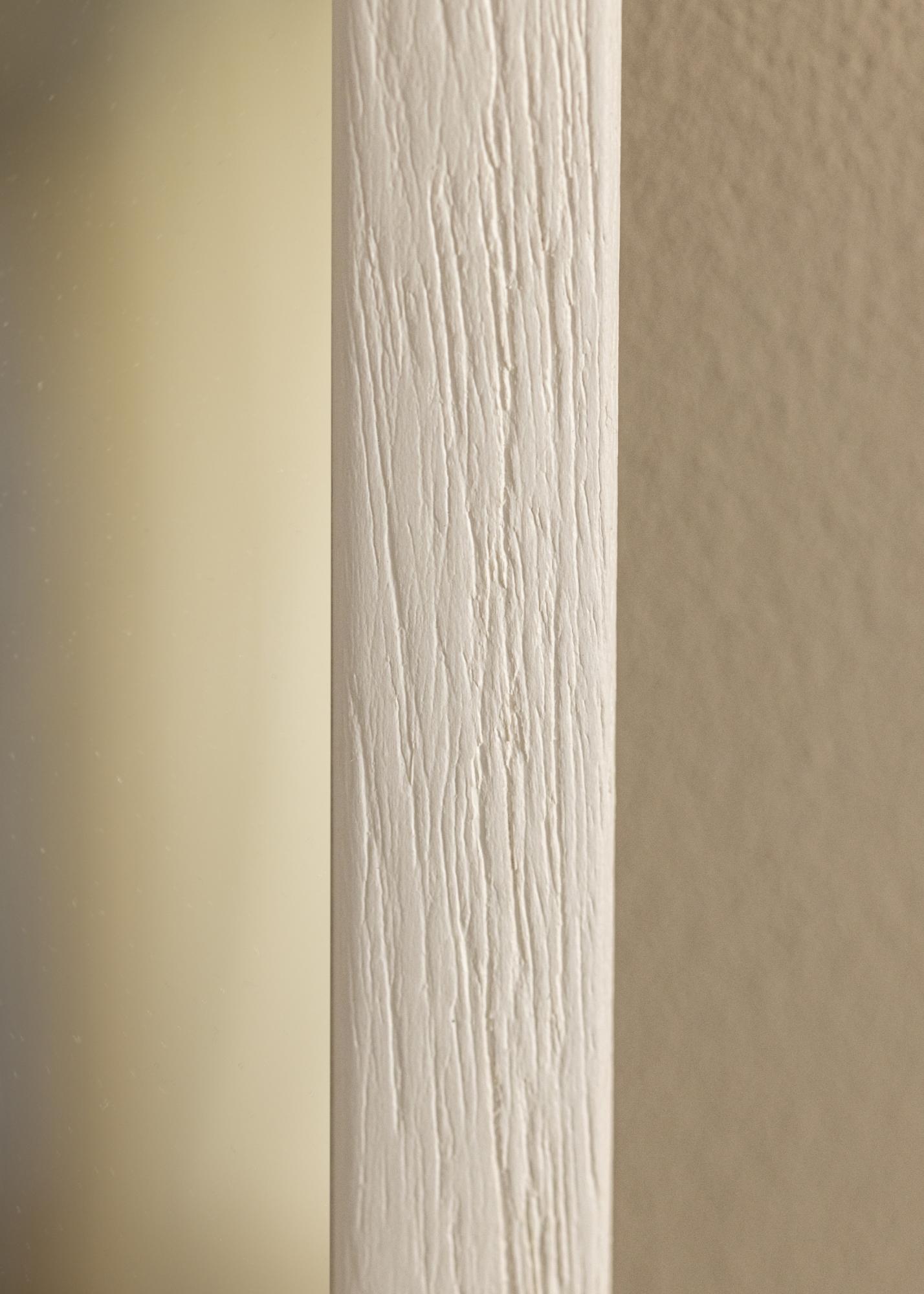 Speil Cornwall Hvit er et målbestilt speil som produseres av oss for å passe akkurat dine behov. Med sin elegante hvite farge og subtile nyanser tilbyr dette speilet et mykt og naturlig uttrykk som smelter inn i de fleste miljøer. Den varme benhvite nyansen gir rommet en behagelig atmosfære, samtidig som den fremtredende trestrukturen med tydelige årer skaper en rustikk følelse.