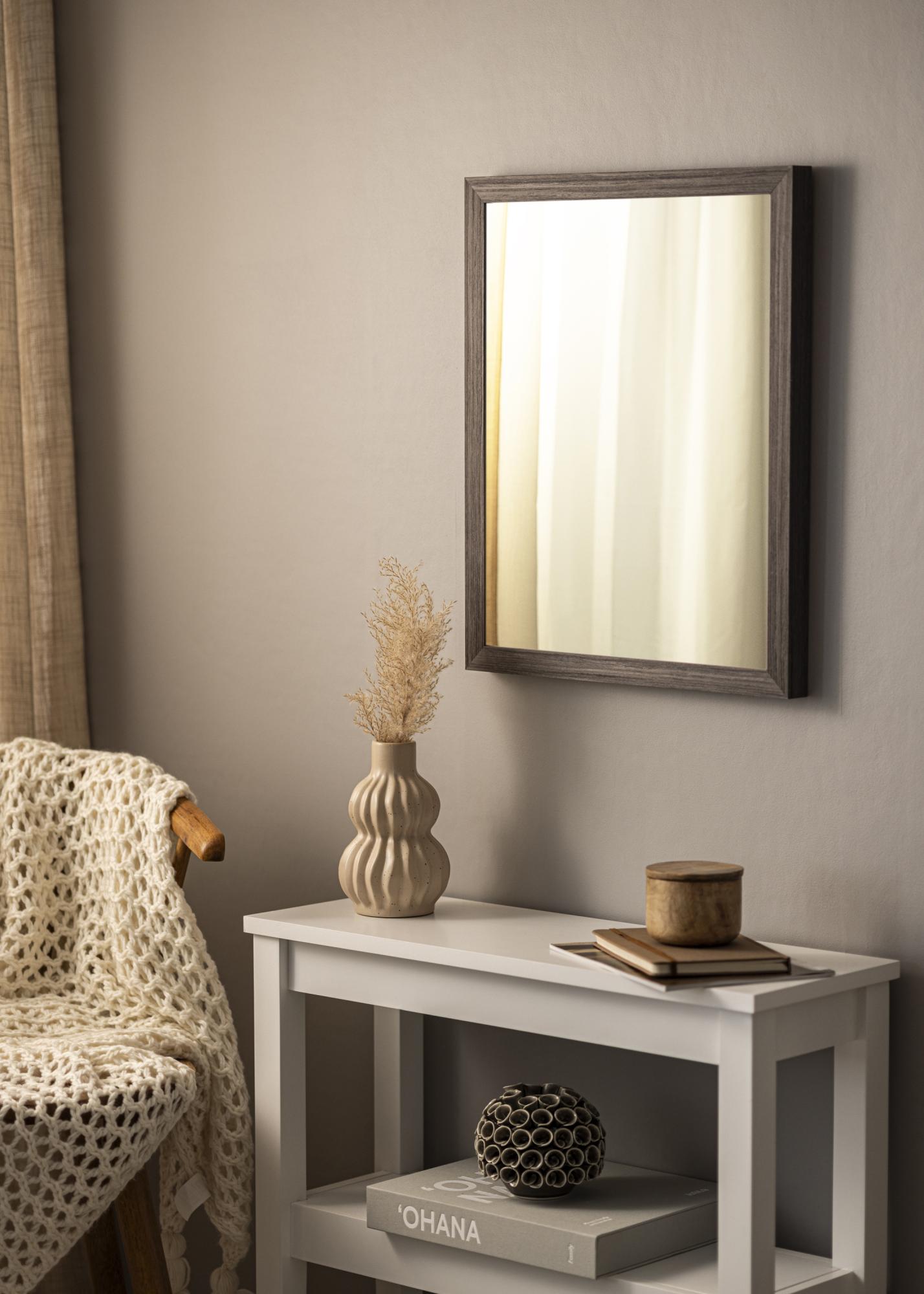 Speil Cotswold Grå er et måltilpasset speil som produseres av oss for å passe dine behov. Med sin 28 mm brede ramme og en dybde på 33 mm, tilbyr dette speilet en perfekt balanse mellom funksjonalitet og estetikk. Rammen er laget av furu og har en mørk trefinish med en tydelig årringstruktur, noe som forsterker det naturlige utseendet og gir rommet en varm og innbydende følelse.