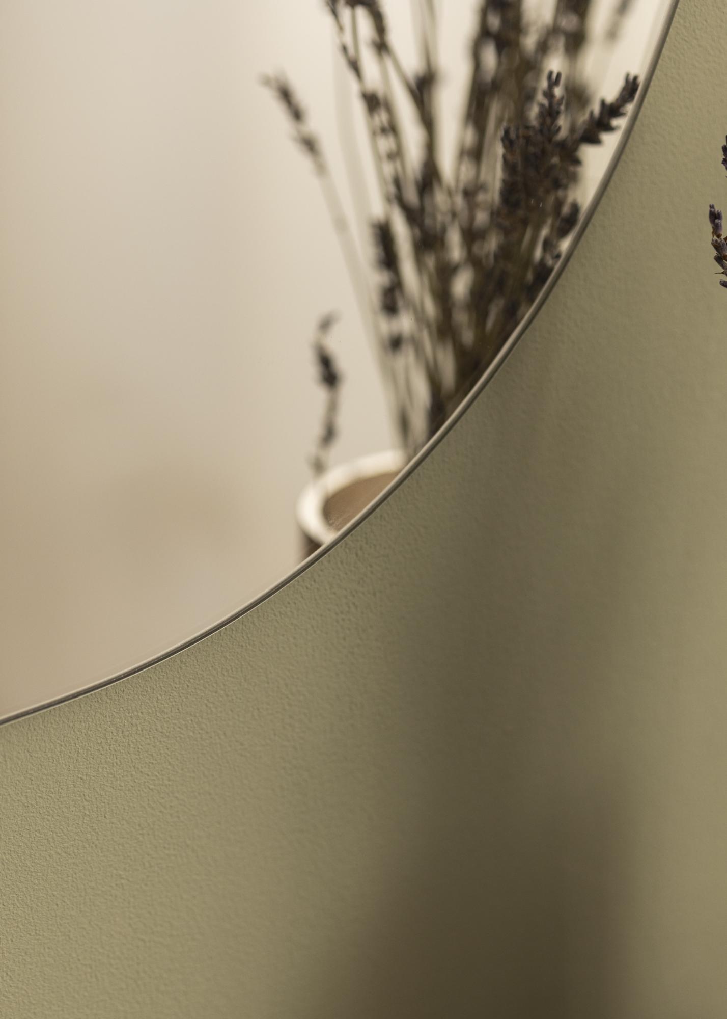 Dette speilet er designet for å være allsidig, med mulighet for å henges både stående og liggende. Dette gir deg friheten til å velge hvordan det passer best i ditt rom, enten det er i gangen, soverommet eller stuen. Den asymmetriske formen legger til en moderne touch som komplementerer ulike interiørstiler og skaper en interessant visuell effekt.