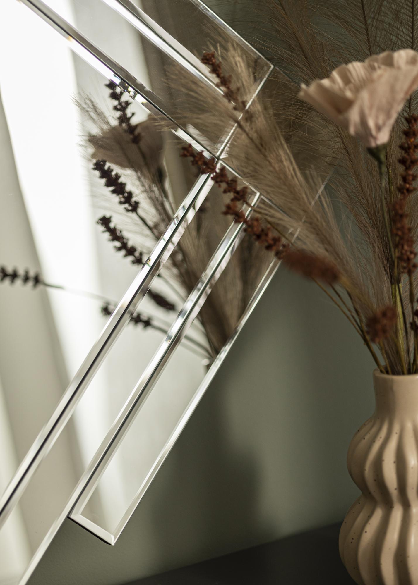 Med sin moderne geometriske komposisjon blir speilet mer enn bare en funksjonell gjenstand; det er et stykke moderne kunst. Det passer perfekt i et minimalistisk miljø eller som en kontrasterende detalj i en mer tradisjonell innredning. La dette speilet være den spesielle detaljen som fullfører rommet ditt med stil og eleganse.