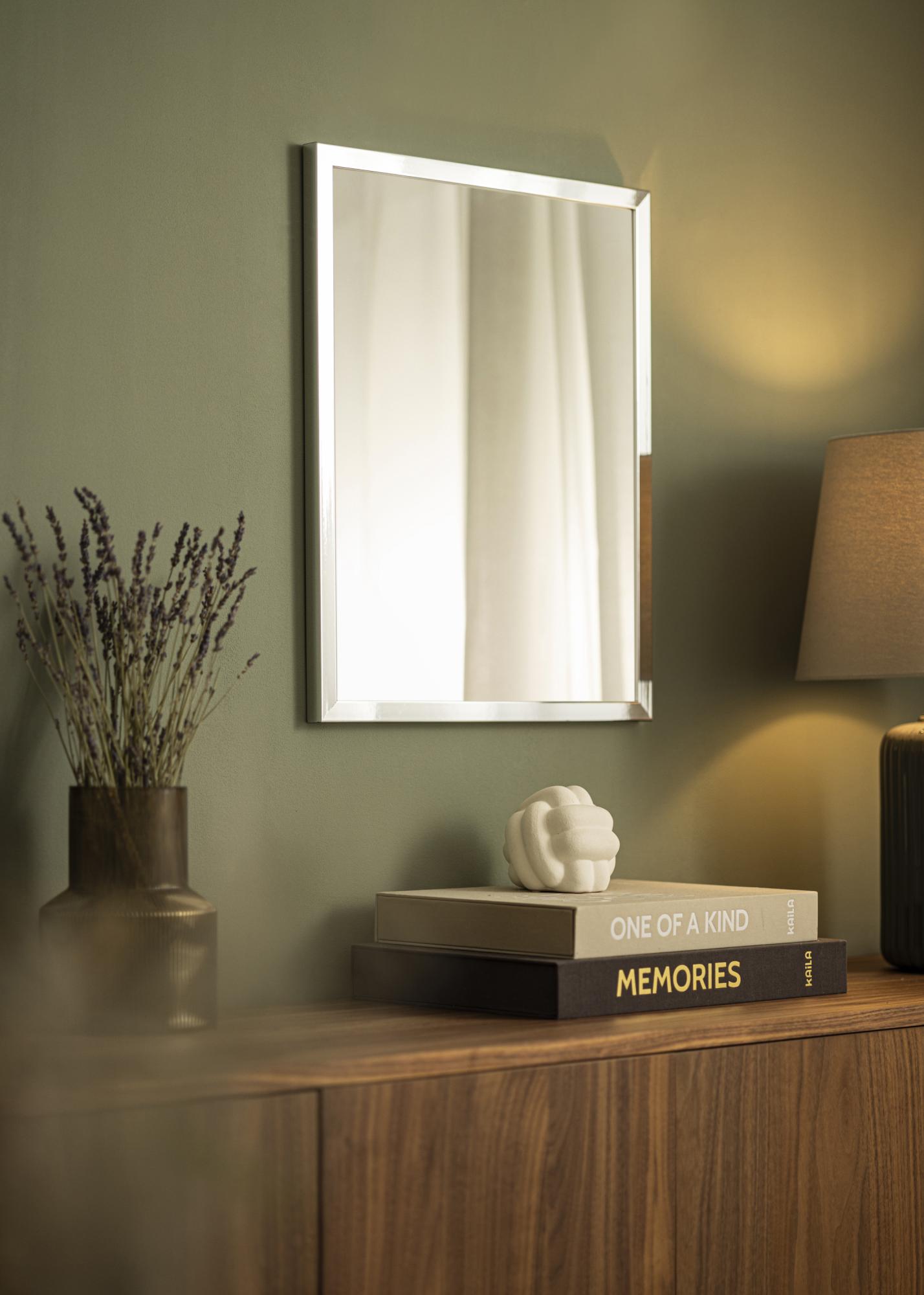 Rammen på Speil Devon Silver er 20 mm bred og har en dybde på 20 mm, noe som gir det en diskret, men likevel tydelig innramming. Laget av Ayotre, kombinerer dette speilet holdbarhet med estetikk. Den glatte metalliske overflaten fanger opp omgivelsene og skaper en dynamisk glans avhengig av lysets vinkel, noe som gjør det til et levende element i din innredning.