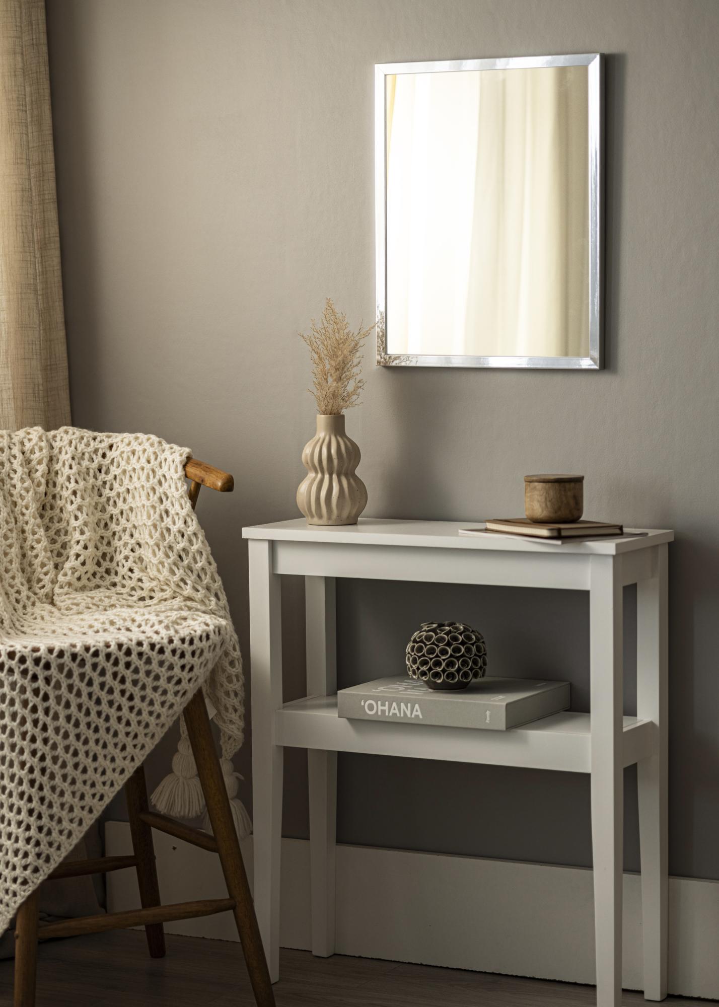 Speil Devon Silver er et spesiallaget speil som produseres av oss, noe som betyr at du kan få det i akkurat de målene som passer ditt hjem best. Med sin elegante sølvfinish og speilblanke overflate blir det et stilrent innslag i hvilket som helst rom. Det reflekterer lys på en måte som skaper en moderne og innbydende atmosfære, perfekt for å gi rommet en følelse av romslighet og lys.