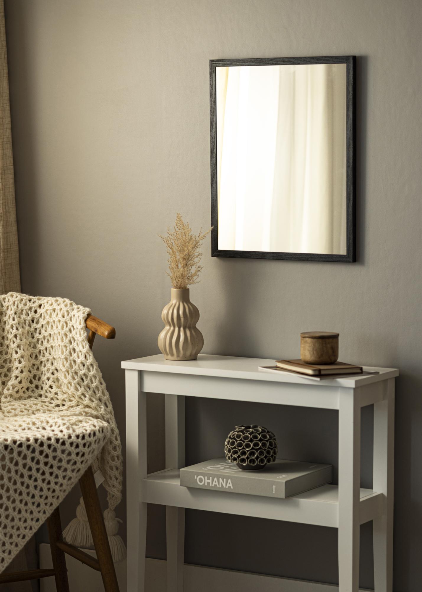 Speil Devon Svart er et utmerket valg for deg som søker en kombinasjon av stil og funksjonalitet. Den dype svarte fargen og den naturlige trestrukturen gir et tidløst design som varer over tid. La dette speilet bli en del av hjemmet ditt og opplev hvordan det kan forandre atmosfæren i rommet med sin enkle men effektfulle tilstedeværelse.