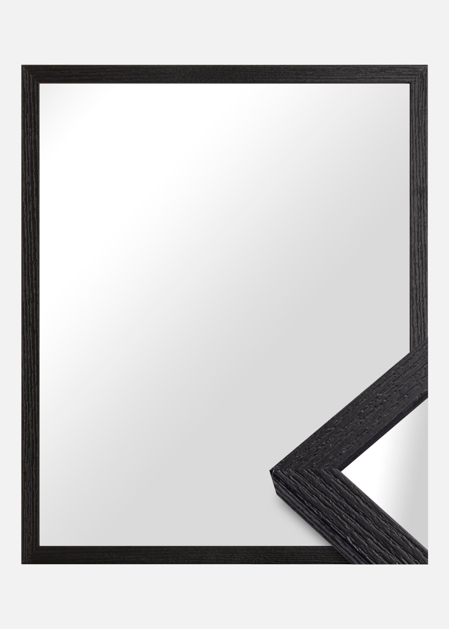 Speil Devon Svart er et spesialtilpasset speil som vi produserer for å passe akkurat dine behov. Med sin dype svarte farge og tydelige trestruktur tilbyr dette speilet en naturlig og rustikk følelse som enkelt smelter inn i ulike interiørstiler. Den matte finishen sammen med subtile årer fremhever treets karakter og gir en elegant touch til hjemmet ditt.