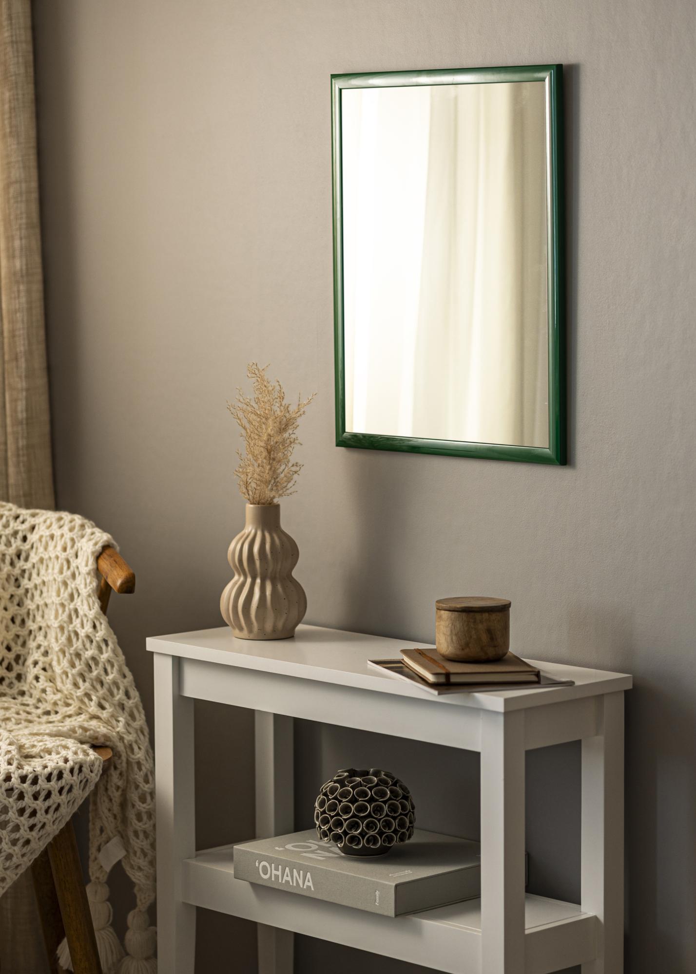 Speil Dorset Grønn er et speil på mål som produseres av oss, noe som betyr at du kan få det i akkurat de målene som passer ditt hjem best. Med sin dype grønne farge og høyglansfinish blir dette speilet et elegant tilskudd til ethvert rom. Den lakkerte overflaten forsterker den intense fargen og reflekterer lyset på en dynamisk måte, noe som skaper en levende atmosfære.