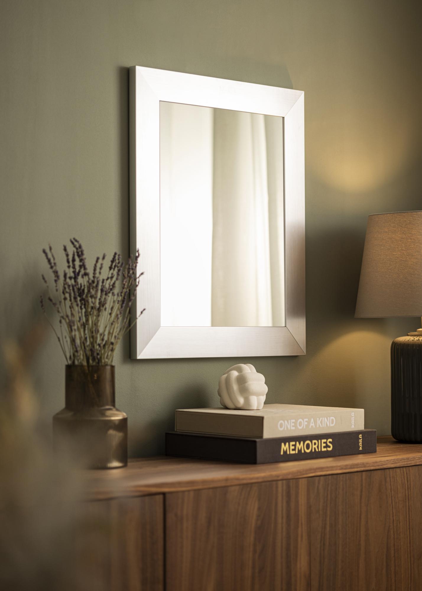 Speil Dover Glatt Sølv er et elegant og stilrent speil som produseres av oss med stor omsorg. Dette speilet er perfekt for deg som søker en moderne interiørdetalj med en touch av luksus. Med sin brede ramme i børstet sølvfinish gir det et sofistikert inntrykk og passer utmerket i både moderne og klassiske miljøer.