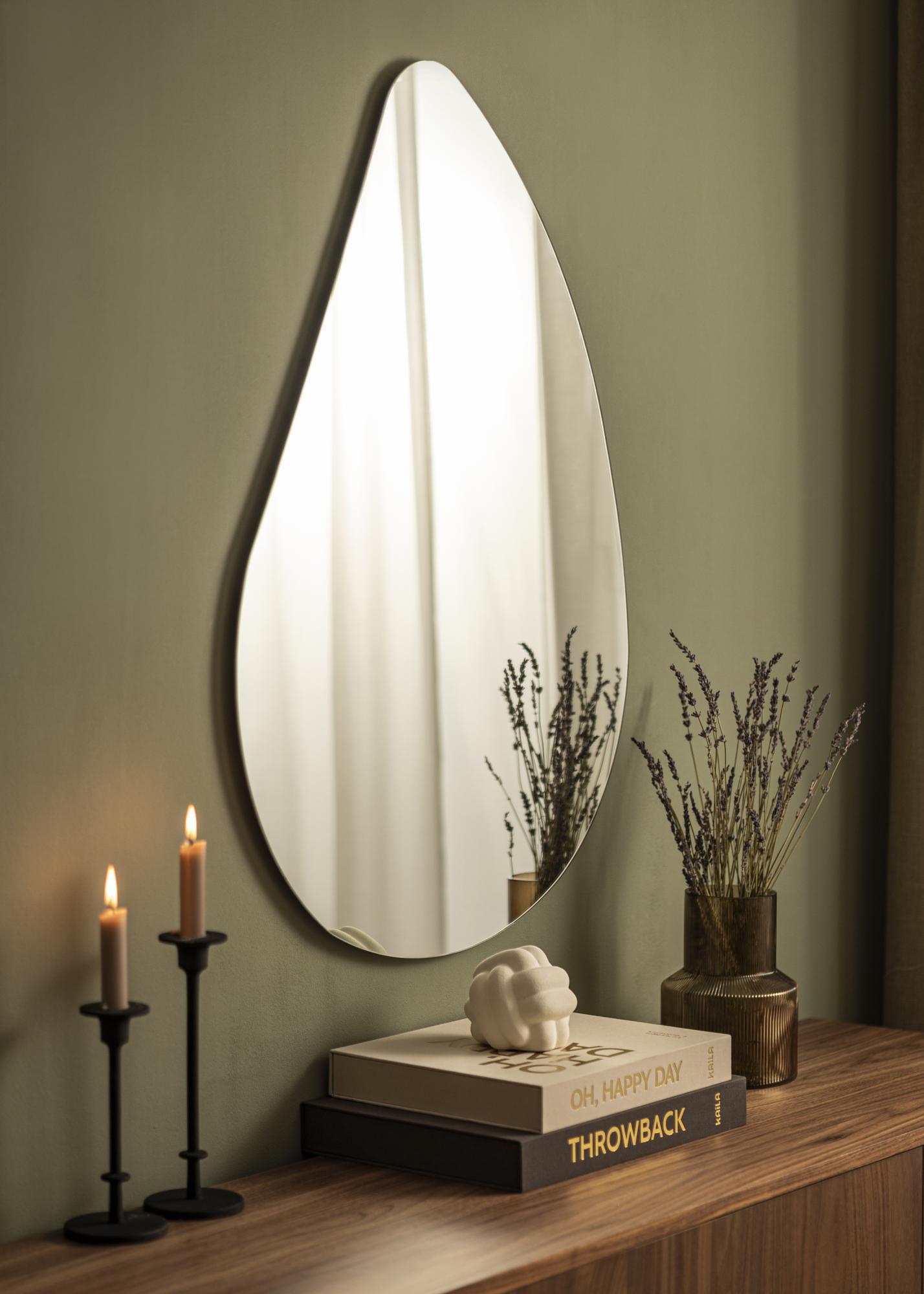 Oppdag den unike sjarmen til vårt speil som kombinerer funksjon og stil på en imponerende måte. Med sine mål på 65x90 cm er dette speilet en perfekt aksent for både små og store rom, og dets dynamiske og organiske form tilfører en moderne touch til innredningen din. Speilets design svinger elegant oppover og det klare speilglasset reflekterer lys på en måte som får rommet til å føles større og mer innbydende.