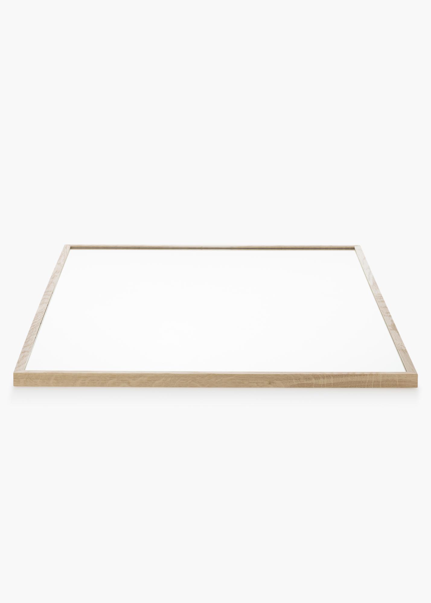 Dette er et veggspeil med tynn treramme, som passer utmerket i både moderne og mer bohemaktige hjem. Speilet viser skandinavisk design på sitt beste, med ufarget speilglass og lys treramme med rett profil, som sammen gir et lyst og friskt utseende.