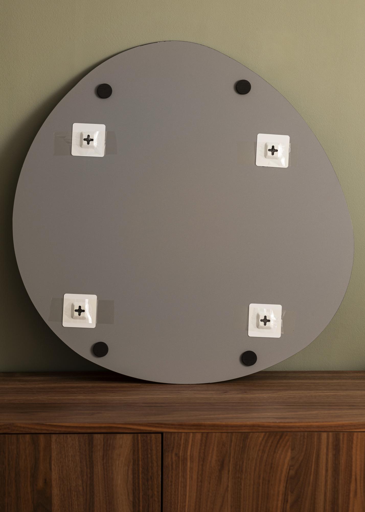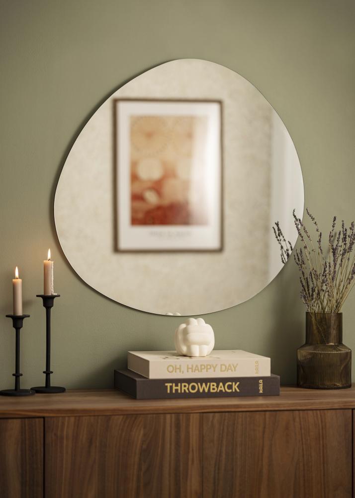 Oppdag den stilige og allsidige speilet som blir et naturlig blikkfang i ethvert rom. Med sine generøse mål på 70x70 cm tilbyr dette speilet en praktisk og dekorativ funksjon i hjemmet ditt. Dens avrundede form med en myk bøyning på toppen tilfører en organisk og avslappet følelse til rommet, samtidig som den beholder en moderne estetikk.