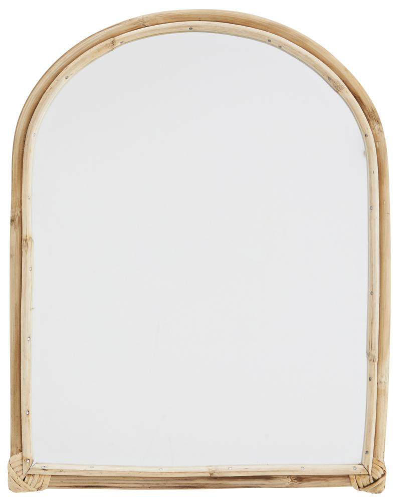 Vakkert speil fra Madam Stoltz, som blir en pen detalj i alle hjemmets rom. Speilet har en elegant, oval form med ramme i bambus. Kombinasjonen av bambus og speilglass gir et bohemsk og naturnært uttrykk, samtidig som speilet får en fresh, moderne look. Veggspeilet måler 36x47 cm. Det er laget av et naturmateriale, noe som gjør at utseendet på hvert enkelt eksemplar kan variere litt.