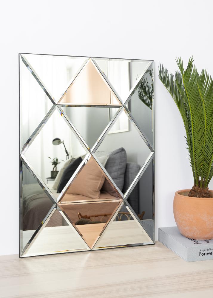 Unikt speil som er en dekorativ og kunstnerisk detalj som passer både i stuen, på soverommet eller i gangen. Kan også utmerket brukes på badet. Speilets navn kommer fra de dekorative snittene formet som en rombe, noe som gir speilet sitt særegne uttrykk.