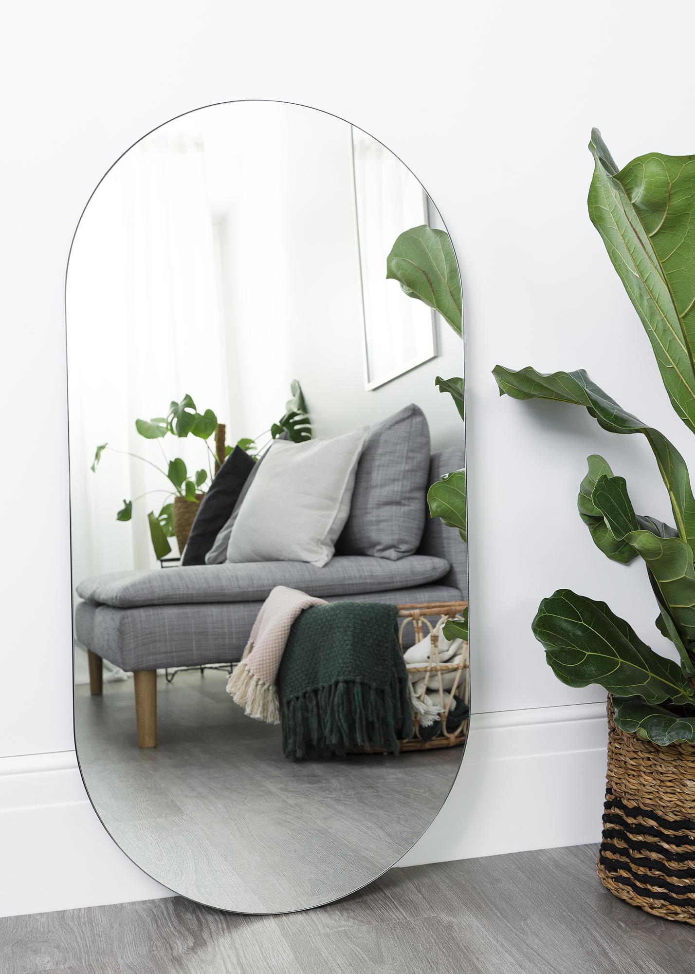 Elegant ovalt speil med målene 50x100 cm fra House Doctor som går like fint å henge vertikalt som horisontalt. Passer utmerket i for eksempel gangen eller garderoben. Speilet er våtromssertifisert, og kan derfor brukes også på badet.