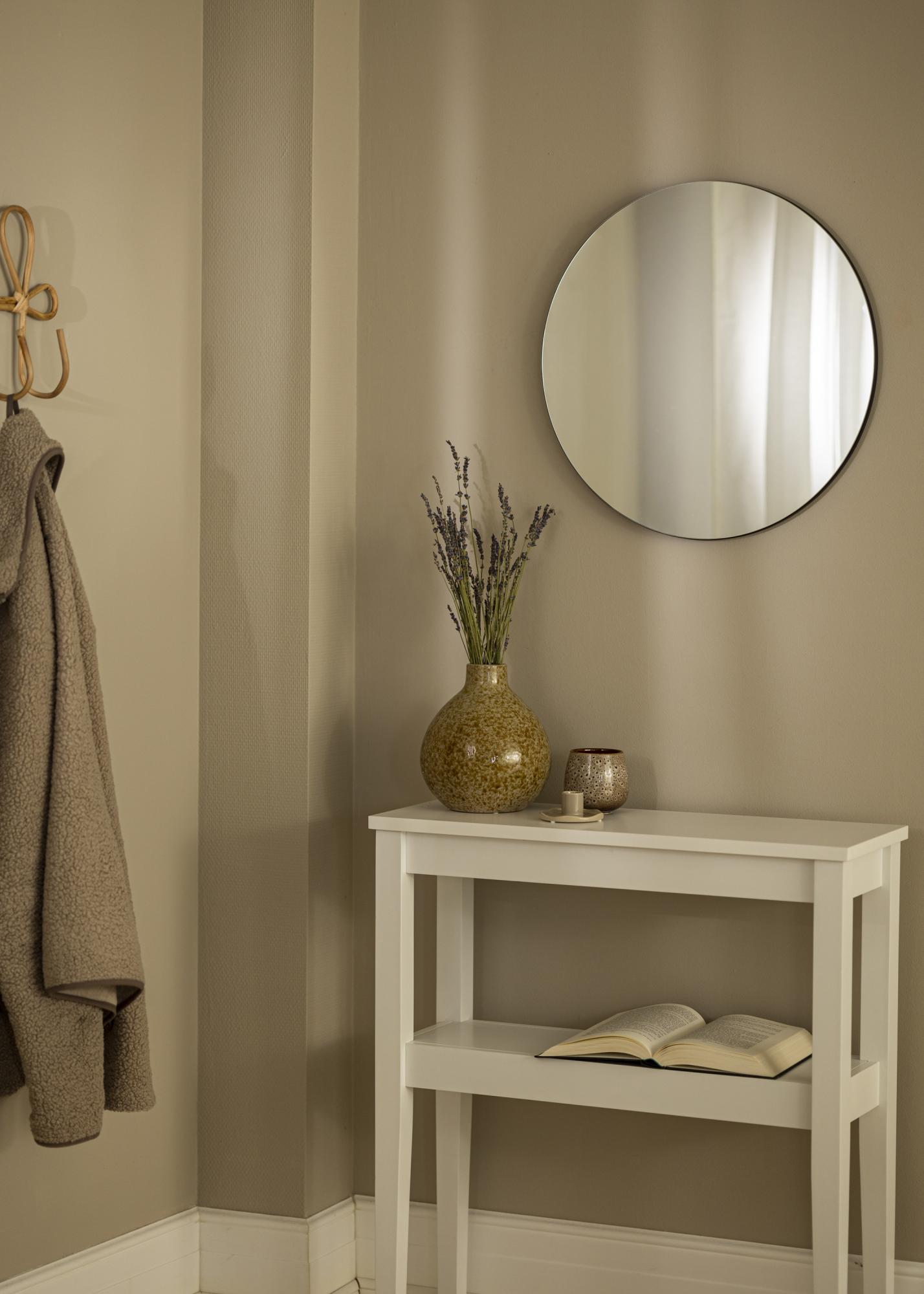 Walls fra House Doctor er et klassisk speil med en pen, rund form. Perfekt å henge i gangen eller som en interiørdetalj i stuen. Et flott speil som tilfører dybde til rommet, og bidrar til en herlig helhetsfølelse i innredningen. Speilets bakside er svart.