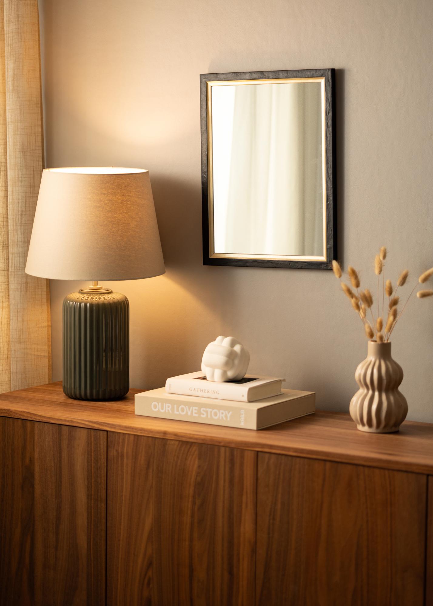 "Leonie" er et speil med en elegant svart profil og et tydelig strukturert ytre. Sølvkanten nærmest speilglasset gir speilet det lille ekstra. Speilet er laget i Italia hvilket vises på dets stilige design og høye kvalitet.