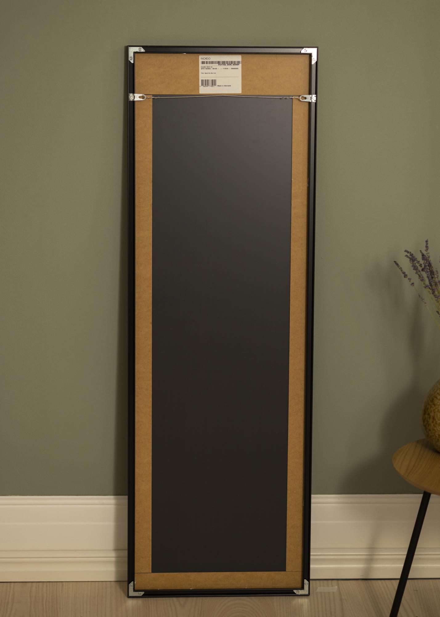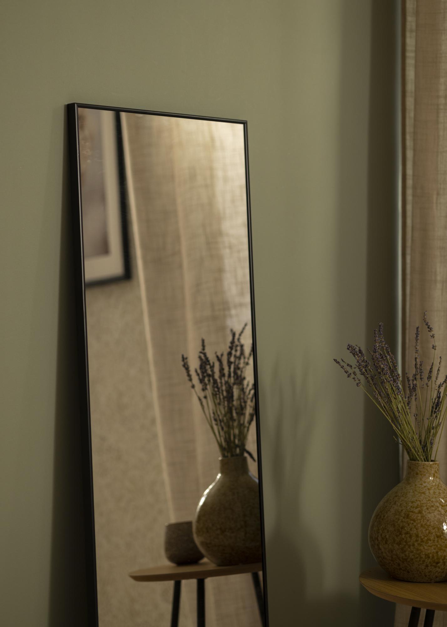 Med sin stående orientering passer speilet perfekt i smale områder eller som et fullt speil på soverommet eller i gangen. Den svarte rammen komplementerer ulike interiørstiler og fargepaletter, noe som gjør det til et allsidig dekorasjonsdetalj. Speilet er ikke bare en vakker detalj, men også et praktisk verktøy for å skape lys og romfølelse i hjemmet ditt.