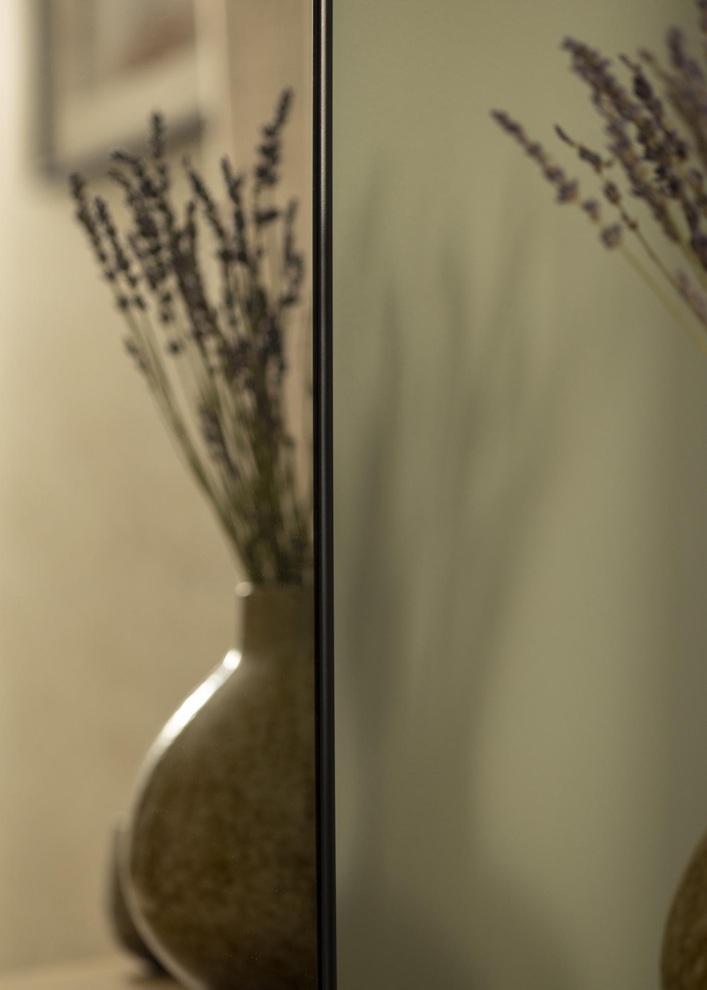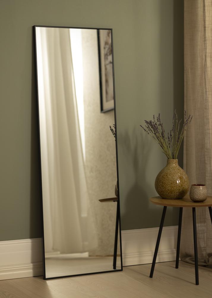 Dette speilet er konstruert for å henges stående, noe som gjør det til et utmerket valg for soverom, gangarealer eller klesrom der vertikal plassutnyttelse er nøkkelen. Den svarte aluminiumsrammen omfavner speilglasset med en subtil, men likevel fremtredende kant, som komplementerer en rekke interiørstiler fra moderne minimalistisk til klassisk chic.
