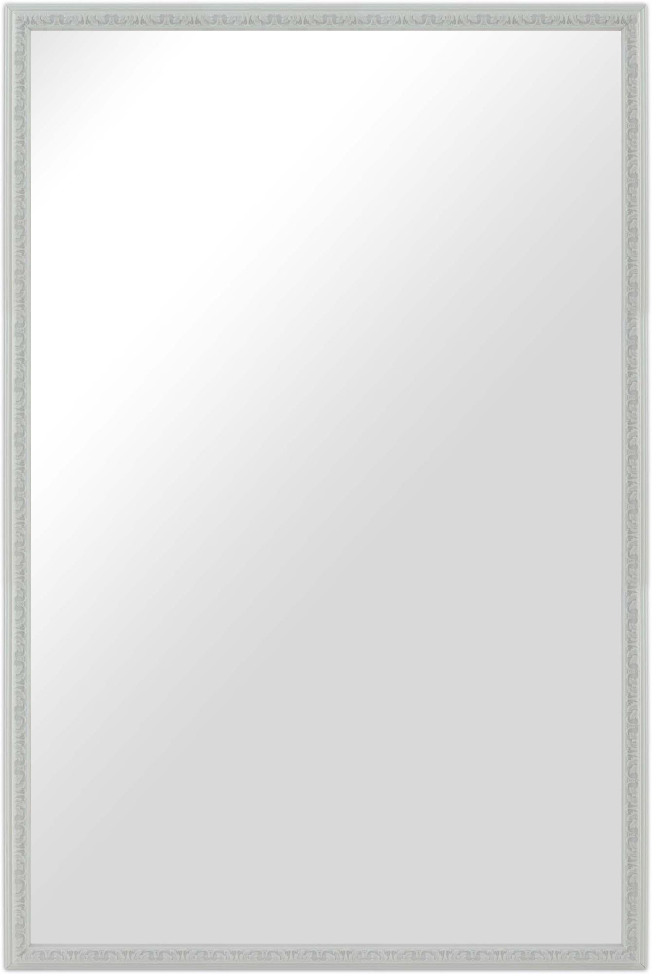 Dette veggspeilet er en stilig interiørdetalj som vakkert reflekterer lyset fra alle lyskilder i rommet. Den hvite rammen gir et lyst og friskt inntrykk, som på en perfekt måte gjøres komplett av rammens dekorative profil og vakre mønster.