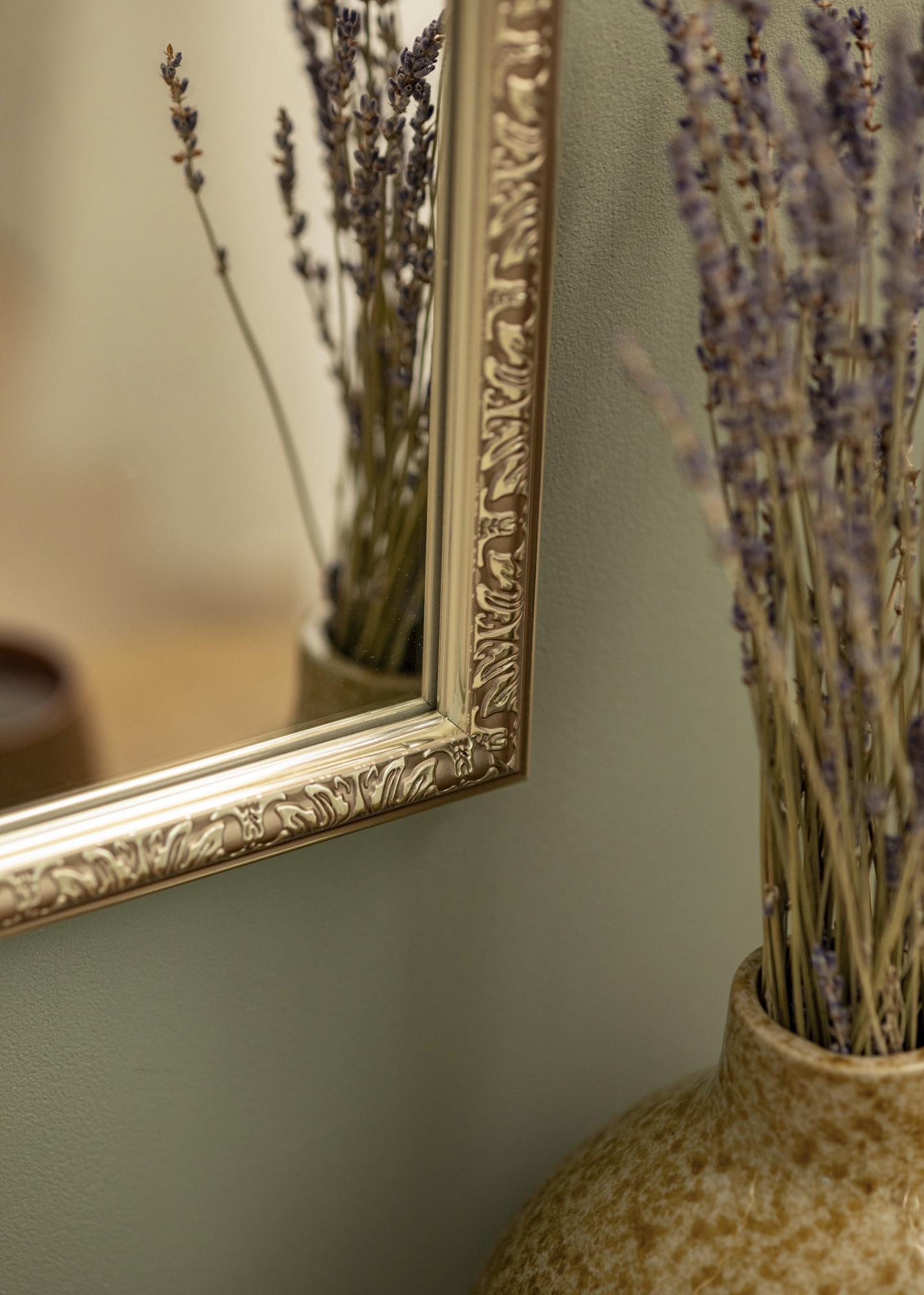 La dette tidløse speilet dekorere veggene i hjemmet ditt. Den sølvfargede rammen har en unik profil og er dekorert med vakre ornamenter. Det klassiske utseendet gjør at det passer utmerket i nesten alle rom, og det passer godt både alene eller som et interessant innslag på bildeveggen!