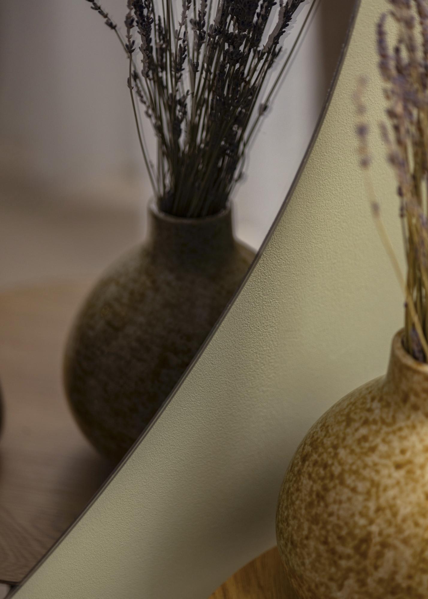 Dette speilet er ikke bare praktisk, men det er også et stilfullt interiørelement som komplementerer ditt hjem. Dens unike form og allsidighet gjør det til et utmerket valg for den designbevisste individet. Du kan selv velge hvordan du vil orientere speilet - enten med den bredere delen opp eller ned - og skape et personlig preg i hjemmet ditt.
