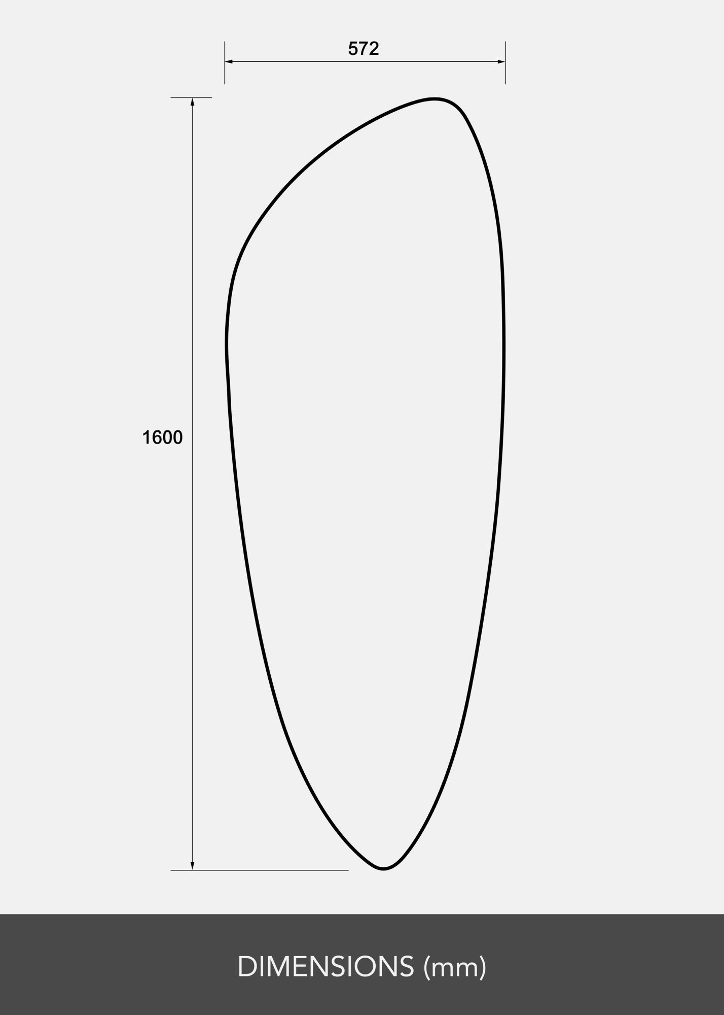 Oppdag den unike sjarmen til vårt avlange speil, en perfekt kombinasjon av funksjonalitet og estetikk. Med sine generøse dimensjoner på 58x160 cm tilbyr dette speilet en helkroppsspeiling som er ideell for soverom, entréer eller garderober. Speilet har en elegant, avlang dråpeform som gir et moderne og mykt preg til rommet, og det gråtonede speilglasset tilfører en sofistikert og moderne touch som harmoniserer med en rekke interiørstiler.