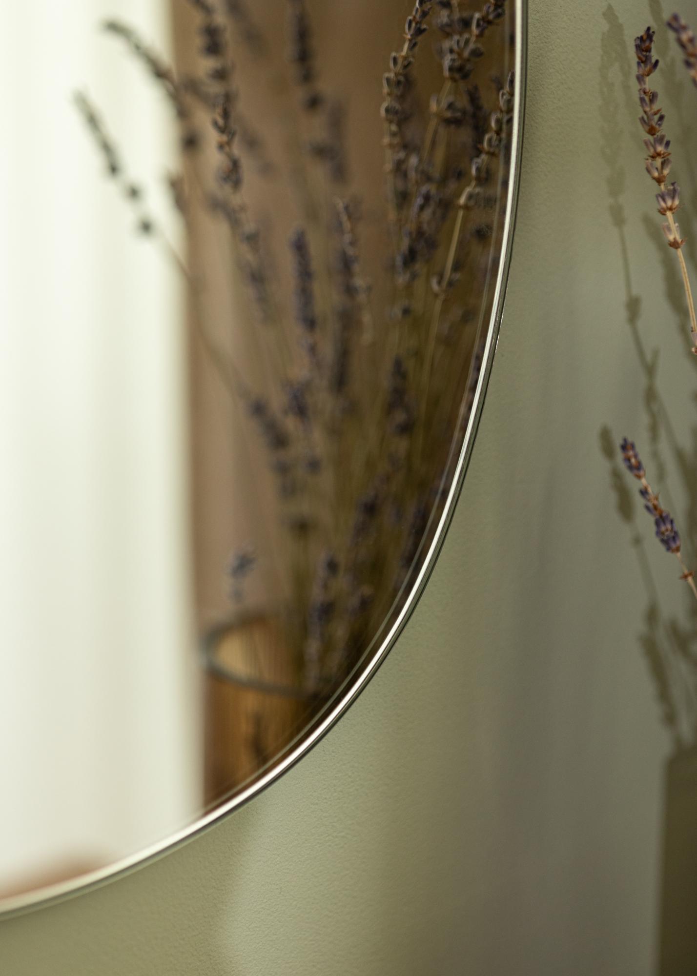 Dette speilet er ikke bare en praktisk detalj, men også en stilig dekorasjon. Dens distinkte form på 50x70 cm gjør den til et iøynefallende element på veggen. Den er designet for å henges opp stående, og passer perfekt i smale områder eller som en del av en større veggkomposisjon.