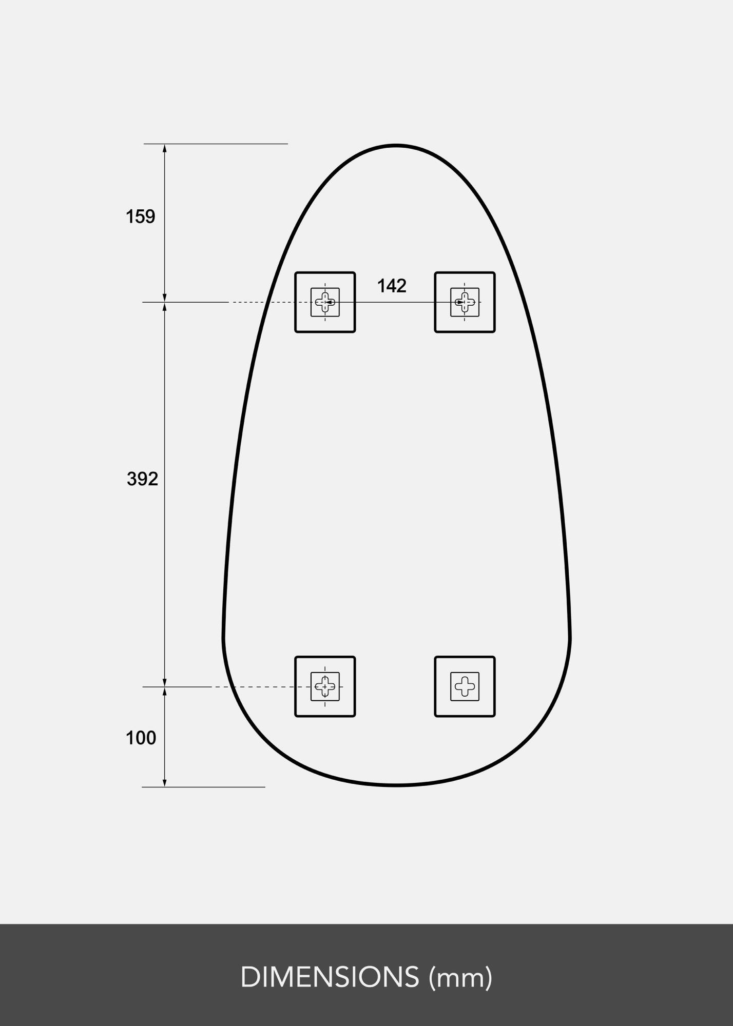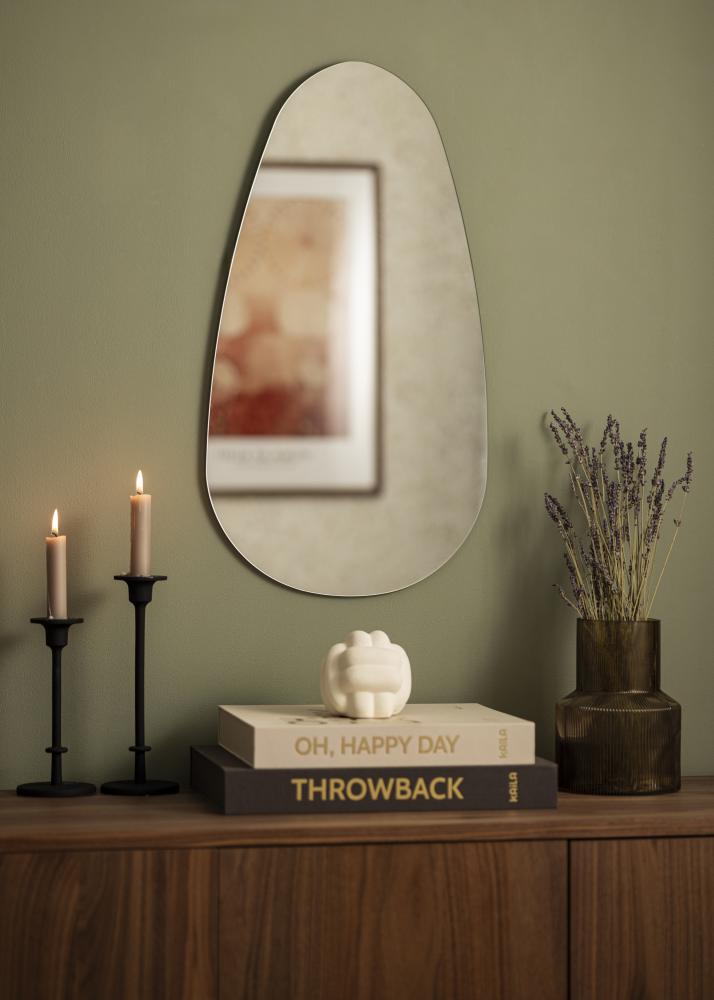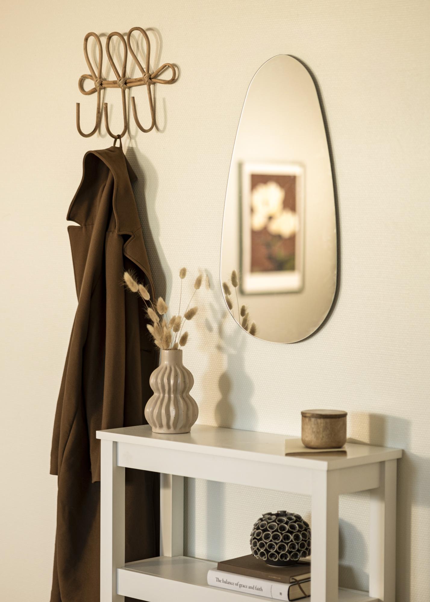 Dette speilet er ikke bare en praktisk detalj, men også et dekorativt stykke som komplementerer din innredning. Dets elegante dråpeformede silhuett mykt sprer seg utover, noe som skaper en følelse av ro og skjønnhet i rommet. Det er designet for å kunne henges både stående og liggende, noe som gir deg fleksibilitet til å tilpasse det etter ditt rom og din personlige stil.