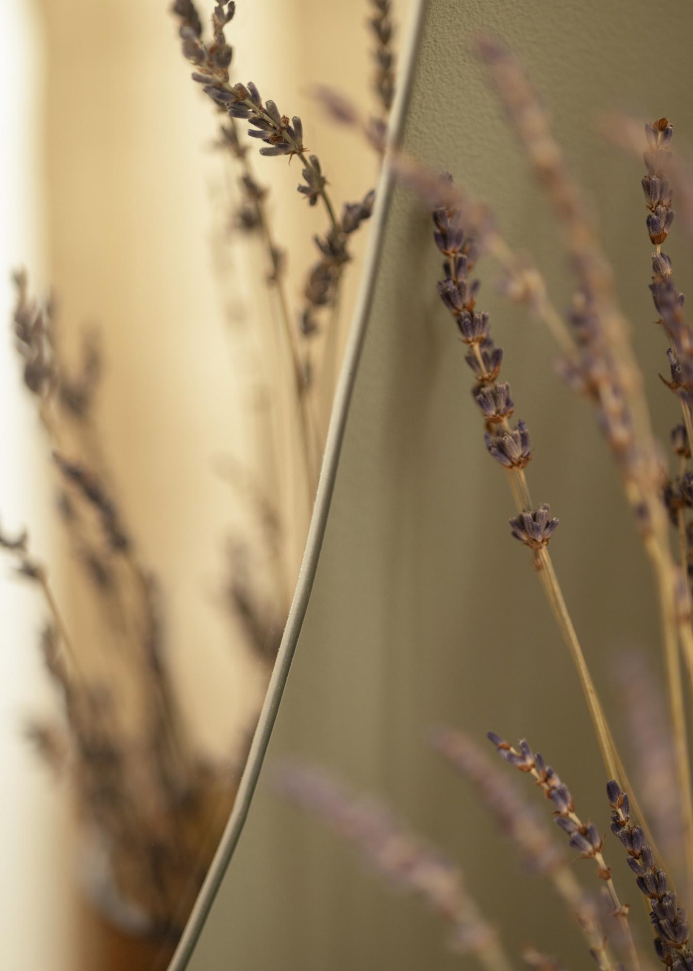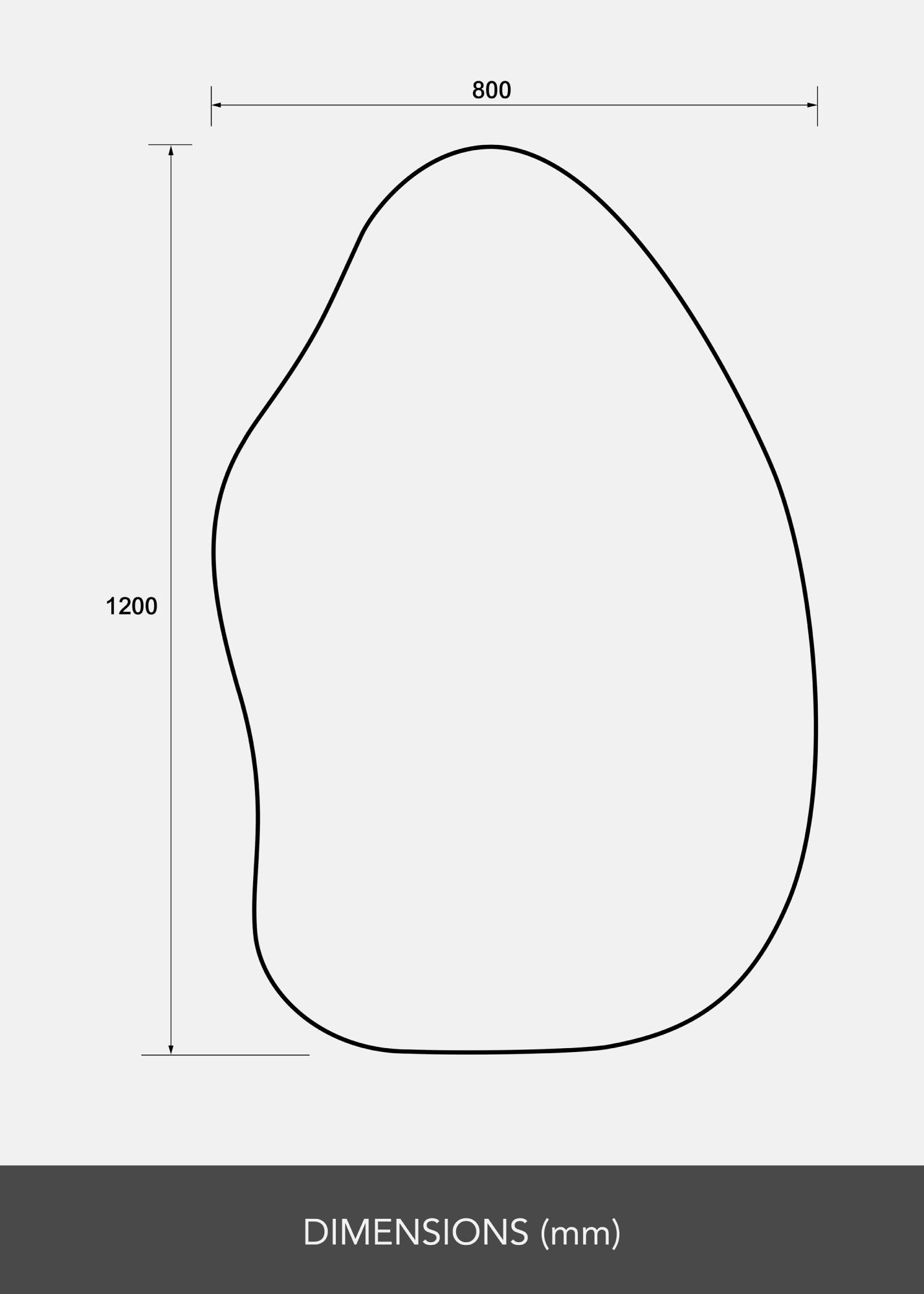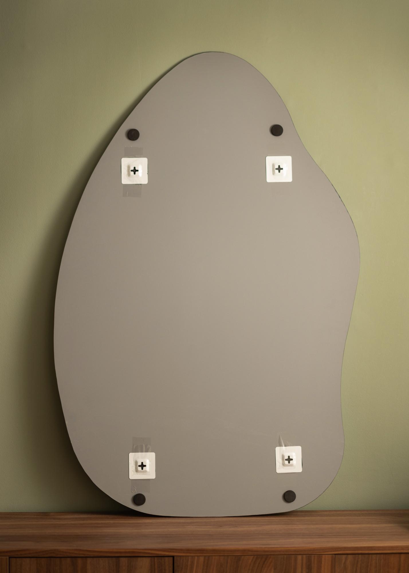 Speilet har en myk og organisk form som minner om en vanndråpe eller et stående blad, noe som gir en elegant og moderne følelse til rommet. Denne unike formen gjør speilet til en samtalestarter og et kunstverk i seg selv, samtidig som det fyller sin praktiske funksjon.