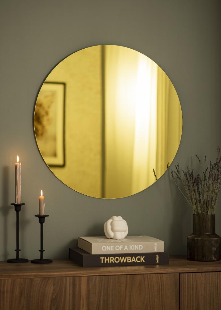 Dette trendy runde speilet kommer til å bli en iøyenfallende interiørdetalj i hjemmet ditt. Uansett om du henger det opp på soverommet, i gangen eller stua, kommer det gulfargede speilglasset til å være en fargeklatt i rommet på en måte som føles både sofistikert og herlig. Speilet har tynt speilglass og design uten ramme, noe som gir det en minimalistisk touch. På baksiden er det speiloppheng til opphenging på veggen.