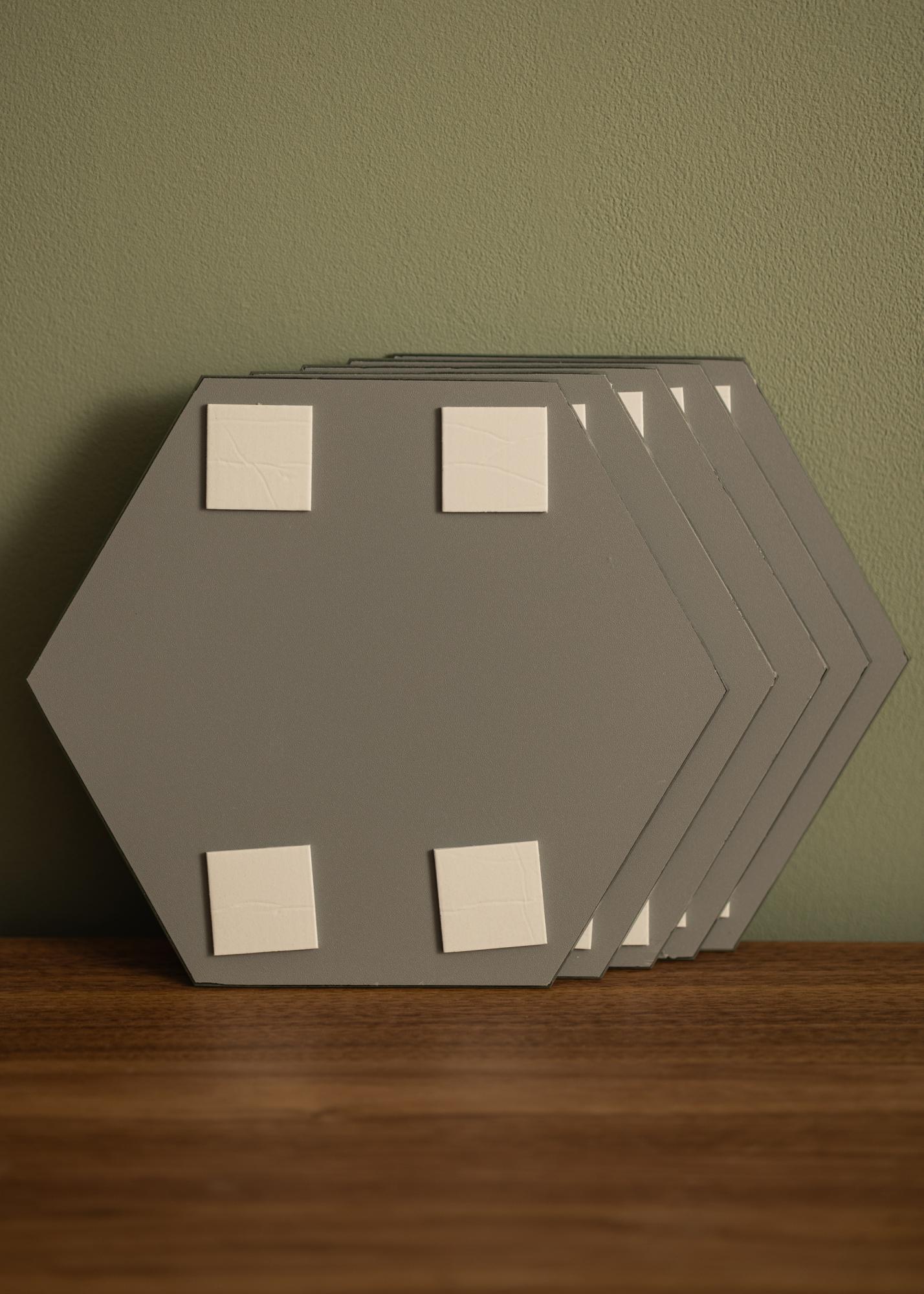 Disse supermoderne speilene med sekskantet form selges som 5-pakning og leveres sammen med dobbeltsidig teip for enkel montering på veggen.