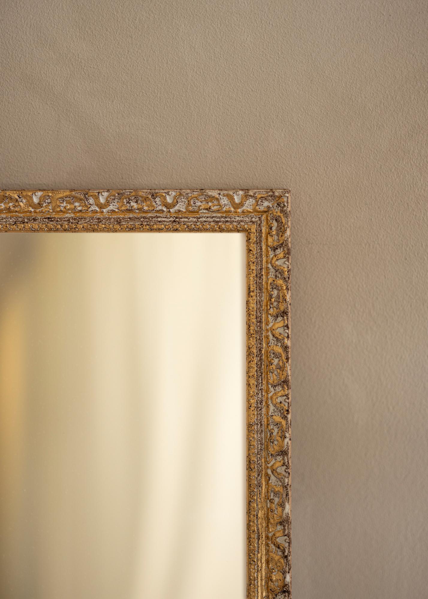 Flott retroinspirert speilramme i høy kvalitet med en eksklusiv design i sølv og gull. Laget i Italia.