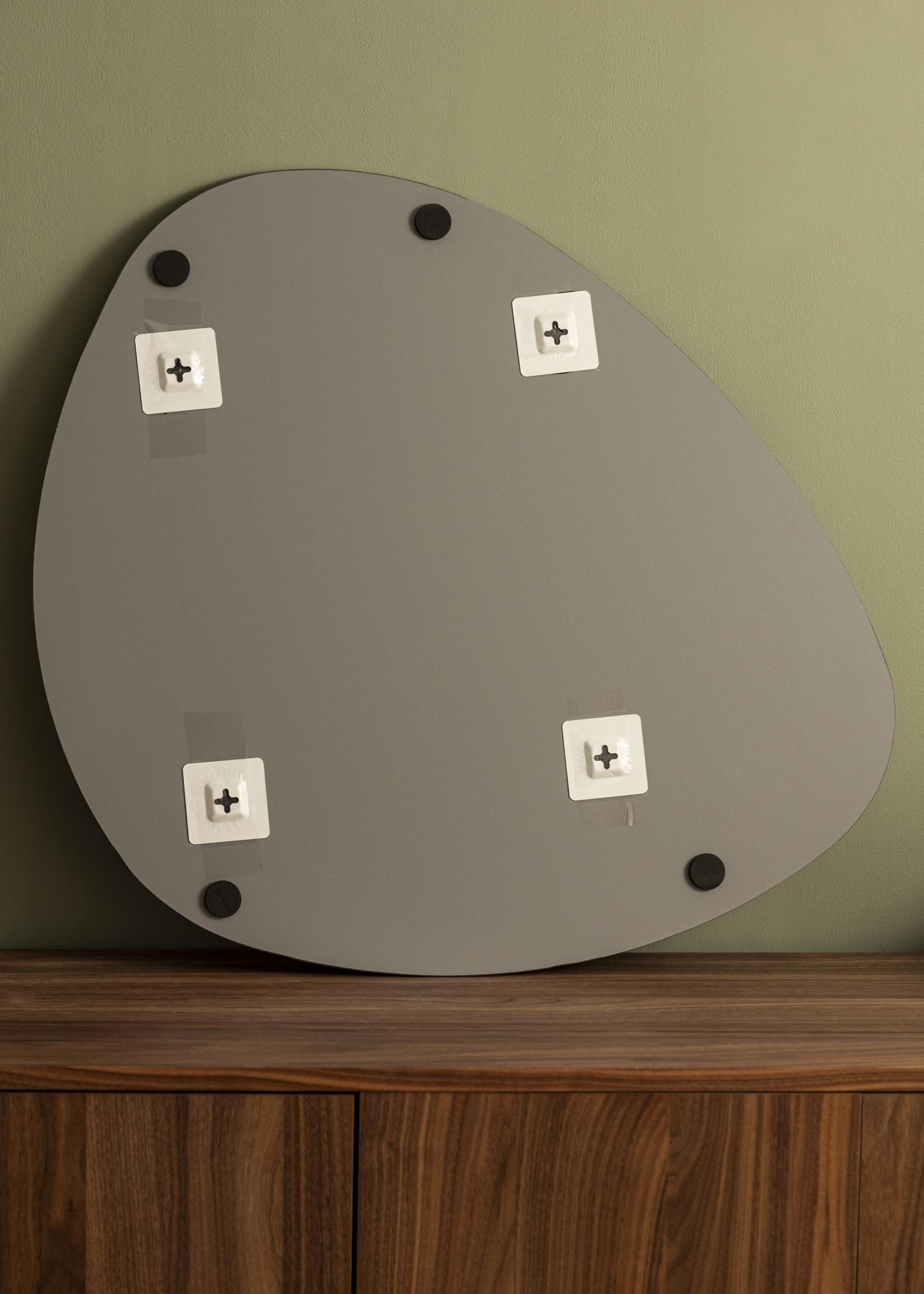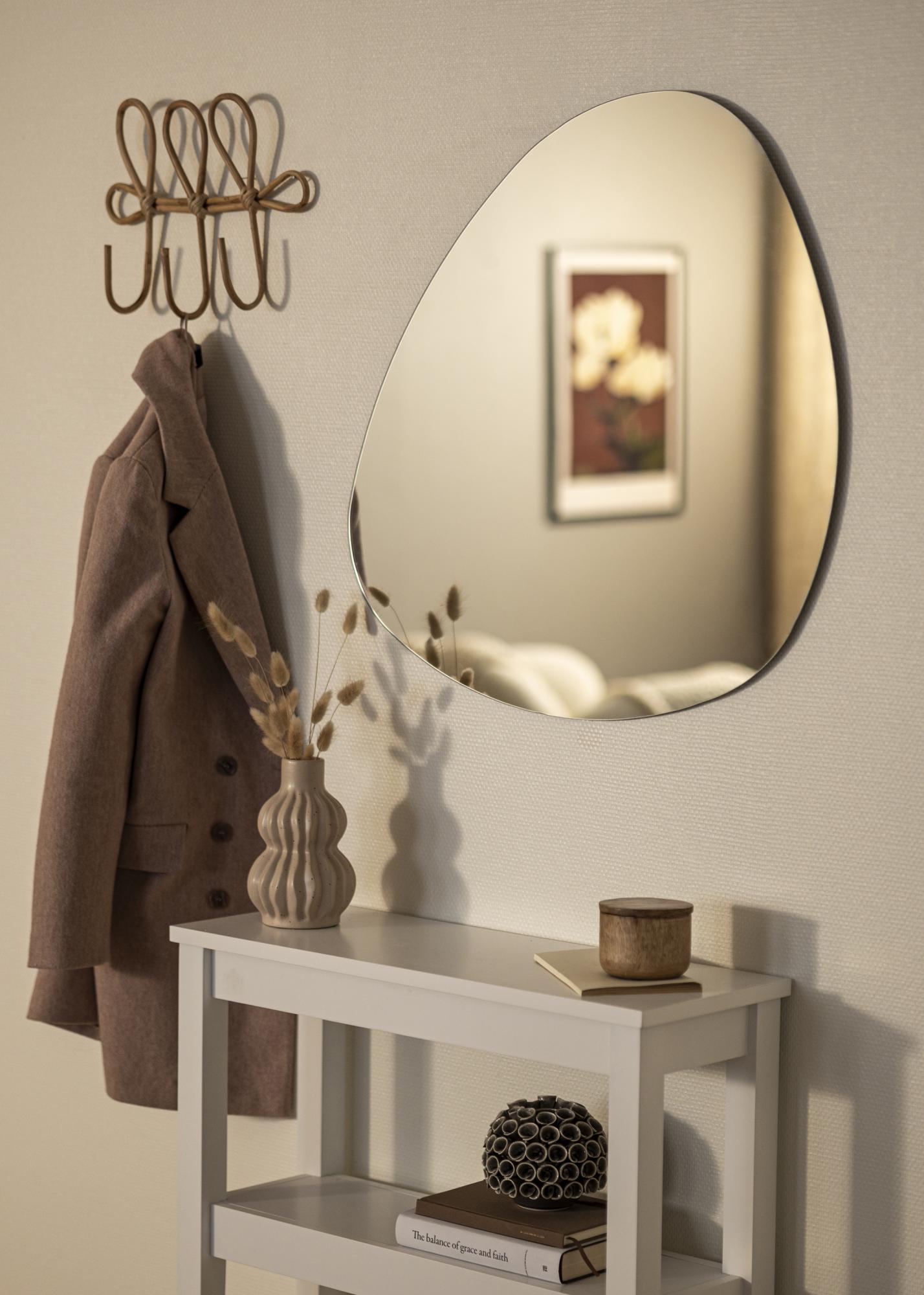 Speilets design er ikke bare estetisk tiltalende, men også funksjonell. Den asymmetriske formen tillater deg å velge hvilken side som skal være opp eller ned, noe som gir deg friheten til å personliggjøre ditt rom. Uansett hvor du plasserer det, vil dette speilet bli en samtalestarter og et uttrykksfullt element i ditt hjem.