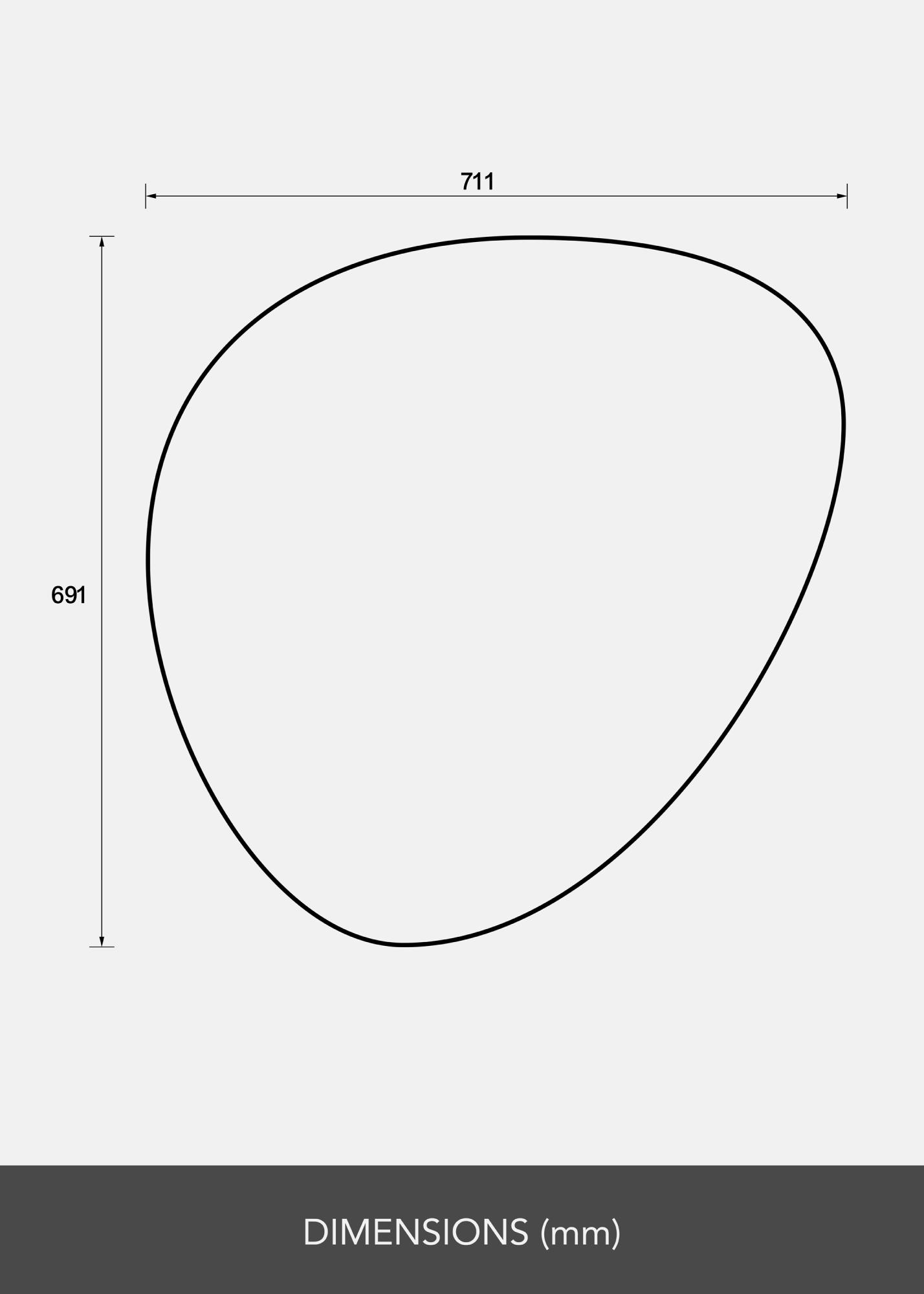 Oppdag en unik detalj for ditt hjem med vår asymmetriske speil, en design som bryter det tradisjonelle og introduserer en følelse av flyt og mykhet i rommet. Med sine svungne linjer gir speilet en harmonisk og balansert følelse, perfekt for å skape en interessant visuell effekt på veggen. Dets størrelse på 70x70 cm gjør det til en ideell aksent for både små og store rom.