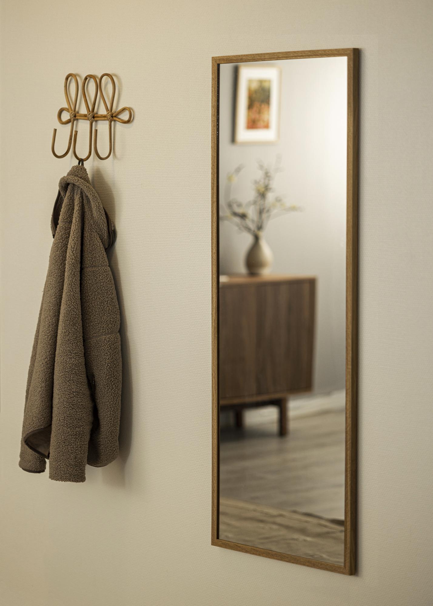 Oppdag den elegante enkelheten i vår stående speil, perfekt dimensjonert for å gi en fullstendig refleksjon. Med målene 62x168 cm er dette speilet en praktisk og stilig innredningsdetalj som passer perfekt på soverommet, gangen eller i garderoben. Den naturlige eikeinnfatningen tilfører en varm og hjemmekoselig følelse til rommet, samtidig som den solide konstruksjonen sikrer en lang levetid.
