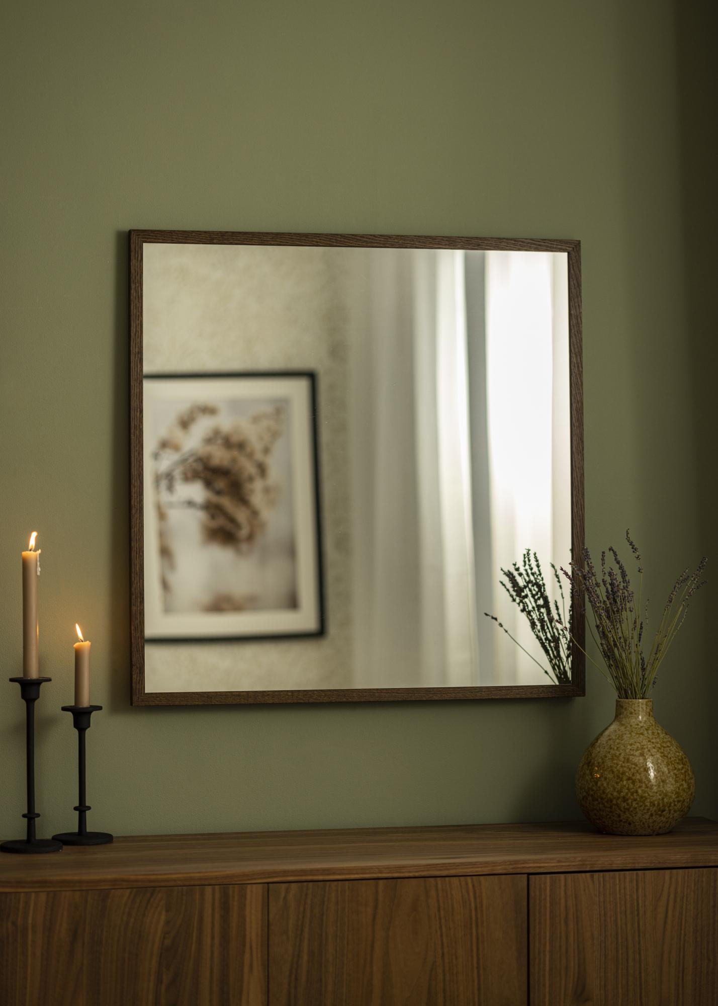 Oppdag den stilfulle elegansen med vår rektangulære speil, perfekt utformet for å berike ditt hjem med en touch av klassisk skjønnhet. Med sine generøse mål på 78x78 cm tilbyr speilet en praktisk og dekorativ funksjon i alle rom. Den tykke rammen, laget av ekte eik, har en dyp mørk eikelanse som umiddelbart tiltrekker seg blikket og skaper en varm og velkommen atmosfære.
