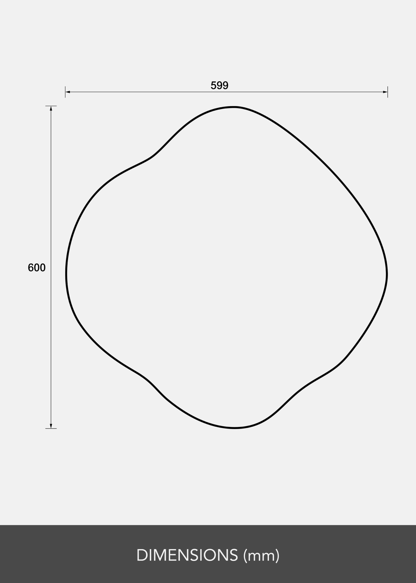 Oppdag den elegante og allsidige speilet som er designet for å passe inn i ethvert rom i hjemmet ditt. Med sine generøse mål på 60x60 cm tilbyr dette speilet en praktisk og dekorativ funksjon. Dets unike bølgeformede kontur tilfører en organisk touch og skaper en moderne følelse i innredningen din.