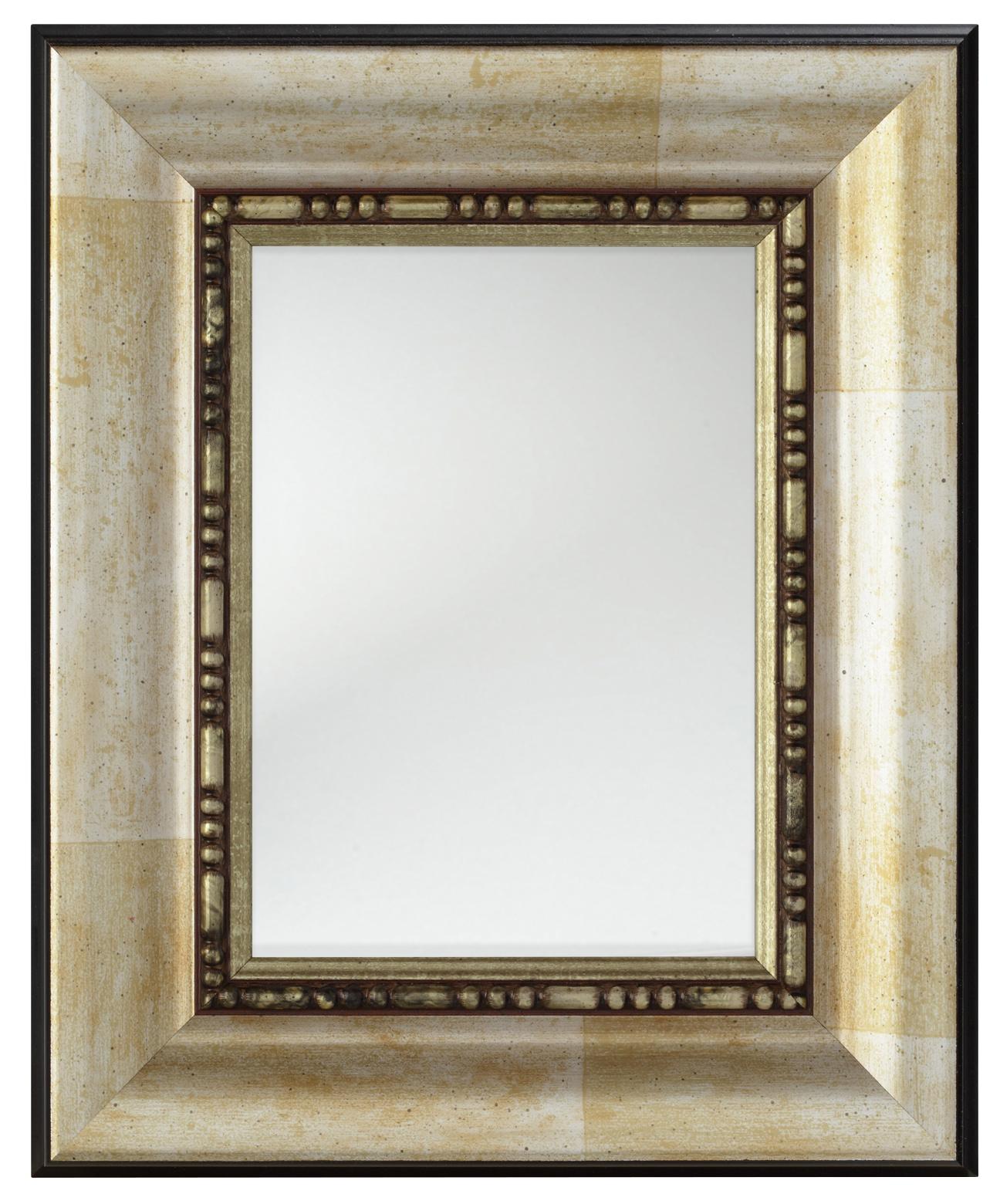 Klassisk speilramme. Svarte sider med sølvdekor og dekorasjoner nærmest speilglasset.