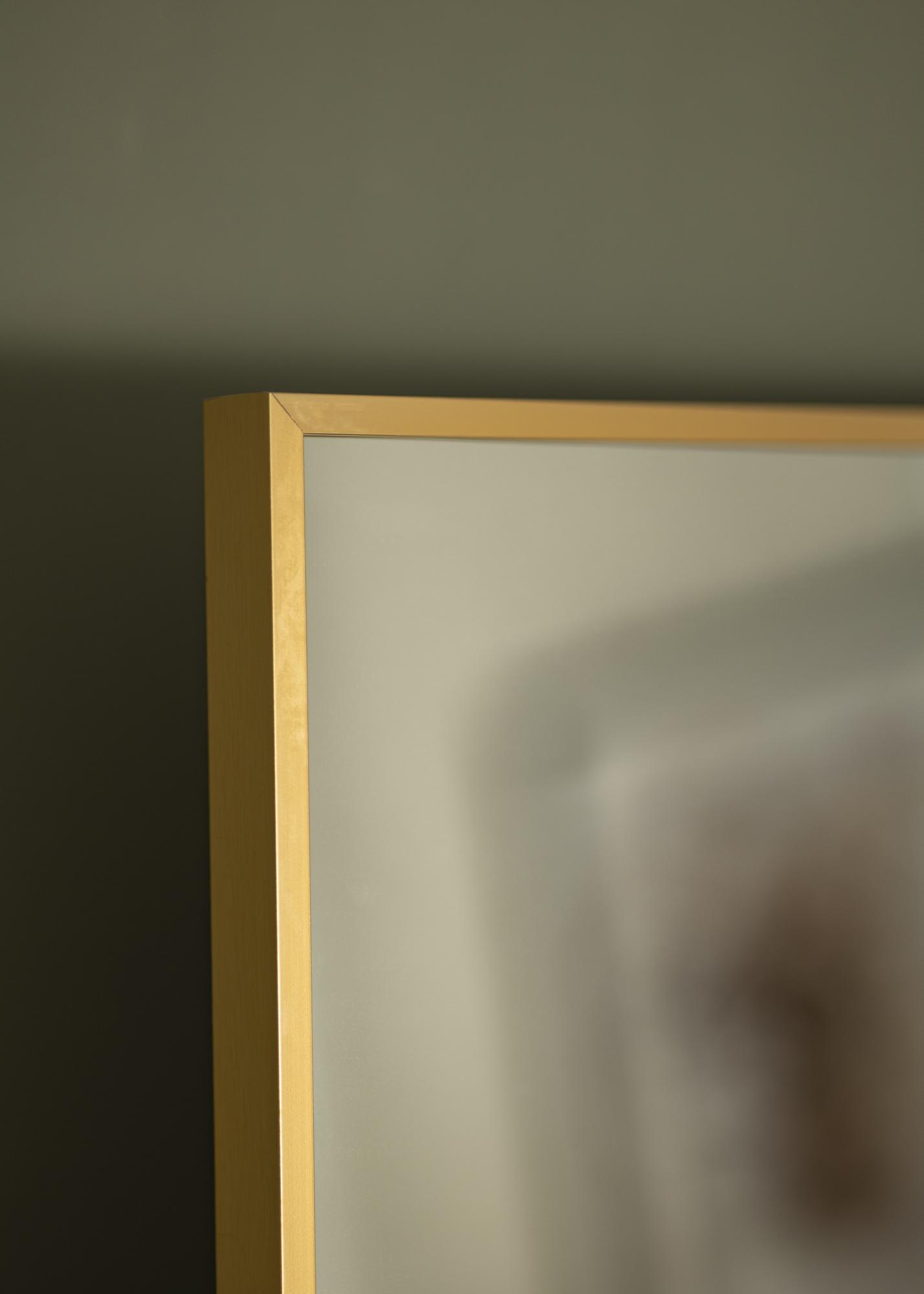 Dette speilet er ikke bare praktisk, men også en dekorativ detalj som løfter innredningen din til nye høyder. Den tynne, gullfargede aluminiumsrammen omgir speilglasset og gir en sofistikert touch som passer inn i både moderne og tradisjonelle miljøer.