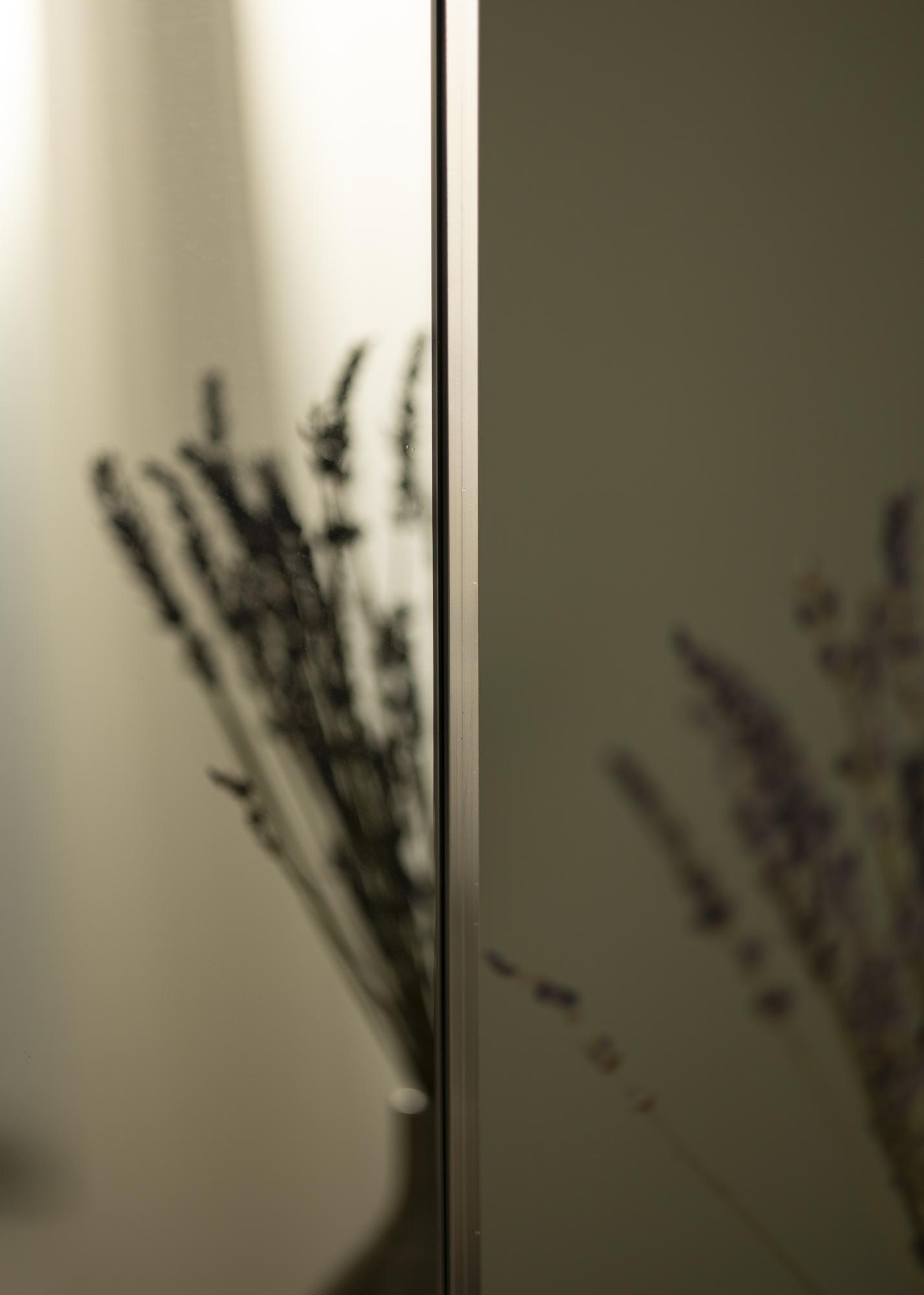 Dette speilet er preget av en tynn, sølvfarget aluminiumsramme som tilfører et touch av sofistikering til ditt interiør. Den rektangulære formen er både tidløs og moderne, og passer inn i en rekke ulike interiørstiler. Speilet sin minimalistiske design gjør at det smelter inn i rommet samtidig som det skiller seg ut som en elegant detalj.