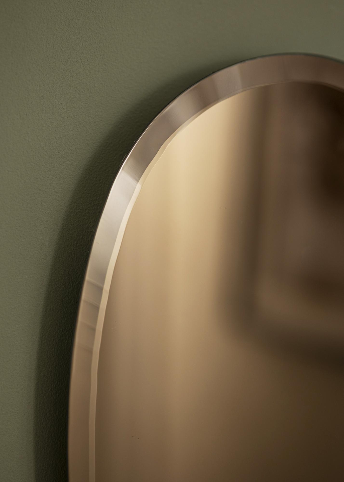 Dette speilet har en distinkt og flytende form som utstråler en organisk følelse, noe som gjør det til et iøynefallende aksent i rommet. Det bronsefargede speilglasset gir en varm og innbydende glans, og legger til en antydning av retro sjarm uten å overvelde det omkringliggende rommet.