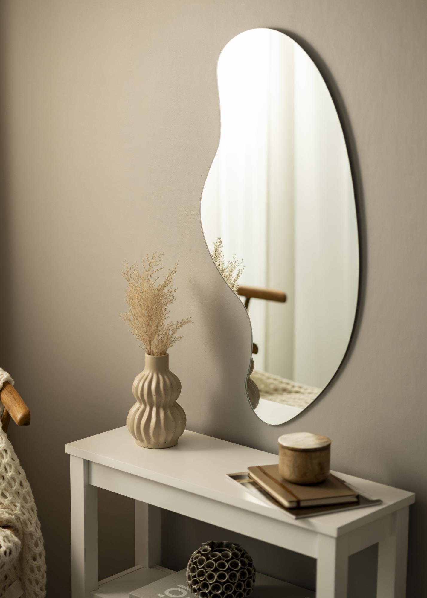 Wavy Cloud er et veldig elegant speil med unikt design – perfekt for deg som leter etter en spesiell interiørdetalj. Det unike designet, med en klassisk avrundet side og en side med bølgeform, skaper en stilig helhet. Speilet har ingen ramme, og har tynt speilglass på bare 4 mm, noe som gjør at det føles enda mer elegant. Dette veggspeilet er 40x80 cm stort.