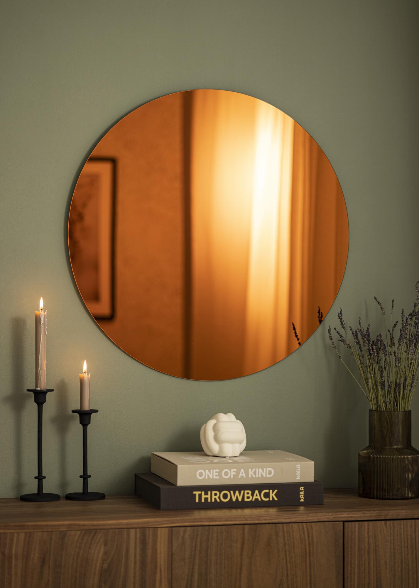 Hvis du plasserer et speil i et rom, får hele rommet med en gang mer liv. Dette runde veggspeilet har rødfarget speilglass, noe som gjør det både unikt og elegant. Et rødt speil som dette passer utmerket som kontrast i rom med milde farger, men også som en naturlig interiørdetalj i hjem med en mer dempet fargeskala. Det er speiloppheng på baksiden.