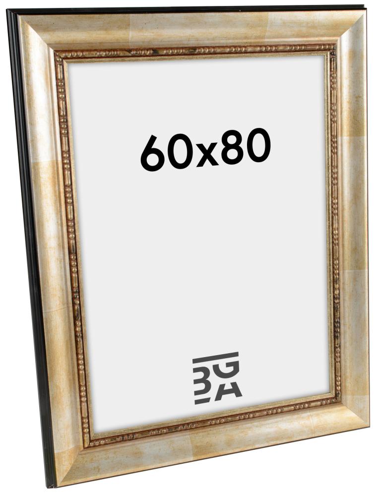 Klassisk portrettramme til bilder du er ekstra glad i. Rammen har svarte sider med en profilert sølvfarge på fremsiden og dekorasjoner nærmest motivet.