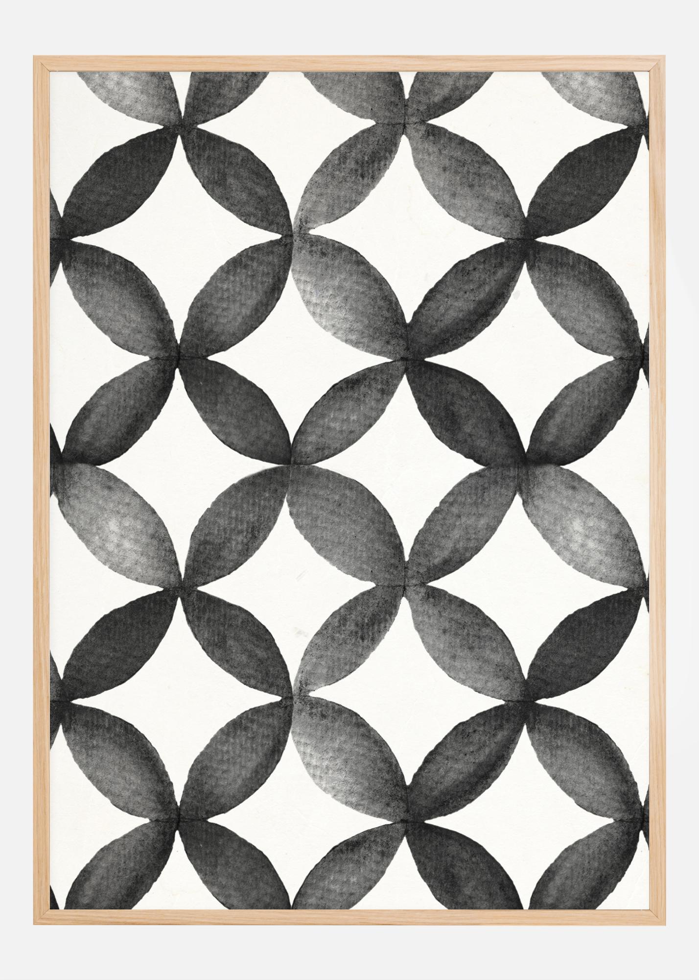 Denne posteren er en hyllest til den estetiske kraften hos geometriske mønstre. Det gjennomgående motivet består av en serie sammenkoblede bladplanter i grasiøse svarte og hvite nyanser. De skaper et stadig flytende mønster som både er fengslende og avslappende å se på. Denne printen forener tradisjonell naturinspirasjon med en moderne grafisk stil, noe som gjør den til et sofistikert tillegg i hvert hjem.