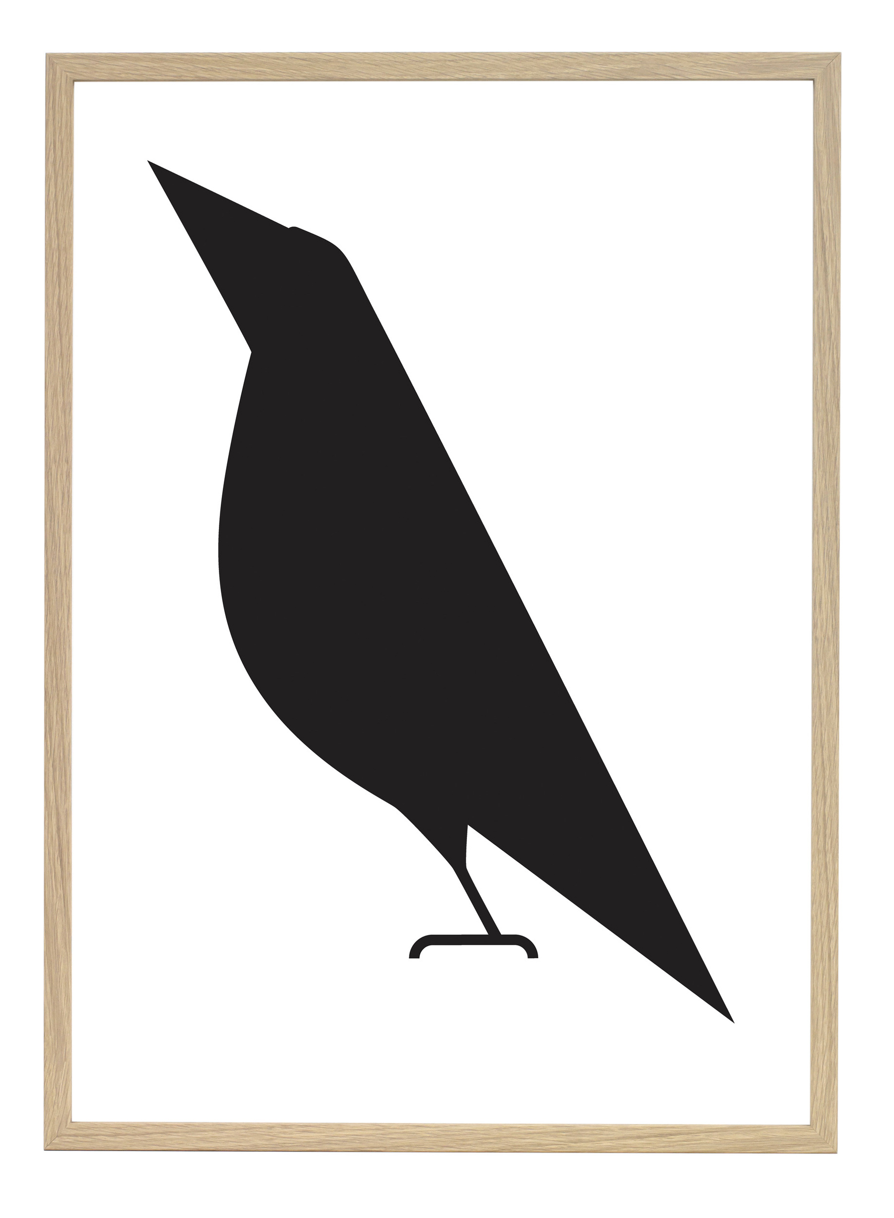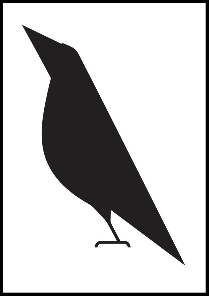 Et grafisk trykk med en stilisert illustrasjon av en kråke med nebbet i været. Fuglens enkle, svarte form mot det hvit papiret gjør at plakaten passer inni alle typer miljøer og innredninger, fra barnerommet til venterommet på tannlegekontoret. Posteren kommer til rette innrammet i en ensfarget ramme eller opphengt i en plakathenger - gjerne samme med andre svarthvite trykk og grafiske blad for å lage en interessant vegginstallasjon.