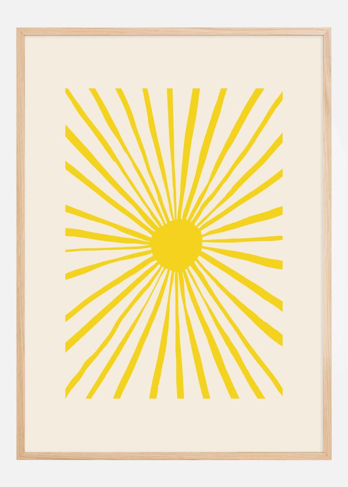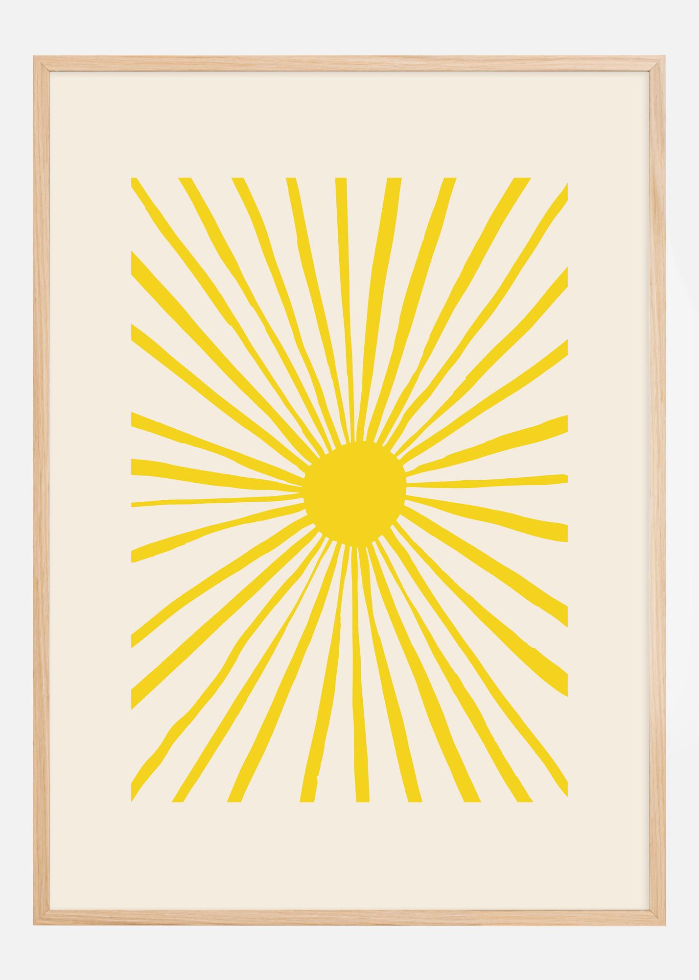 Gi veggen din et snev av solskinn med denne livlige og energigivende plakaten som fanger essensen av en strålende sol. Dette minimalistiske designet kjennetegnes av sine sterke og strålende gule nyanser som stråler ut fra et sentralt punkt, og skaper en dynamisk effekt av solstråler som brer seg ut over en beroligende kremfarget bakgrunn. Denne solposteren gir en følelse av varme og glede og blir et umiddelbart blikkfang i ethvert rom.