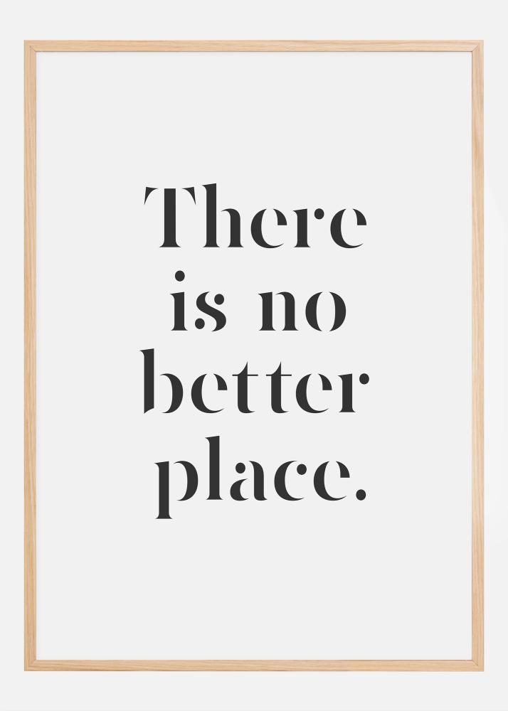 Oppdag vår minimalistiske og stilrene plakat som formidler en følelse av ro og hjemmekos med dens enkle budskap "There is no better place". Denne moderne trykken er perfekt for den som setter pris på skandinavisk design og tydelige, men kraftfulle budskap i sin hjeminnredning. Motiv, som er begrenset til en klassisk svart tekst på en hvit bakgrunn, blir en tidløs interiørdetalj som passer i både et moderne og et mer tradisjonelt hjem.