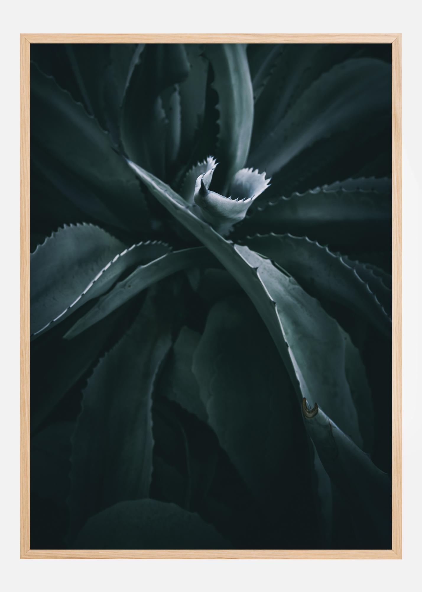 Imponer med denne kunstneriske plakaten som fanger den gåtefulle skjønnheten hos en taggete aloe vera. Den dype grågrønne fargepaletten skaper en nesten monokromatisk effekt, noe som gir en moderne og sofistikert følelse. Hvert blad er skulpturelt og detaljert, med myke kanter som går over i skarpe spisser, noe som fanger plantens essens på en dramatisk og nesten abstrakt måte.