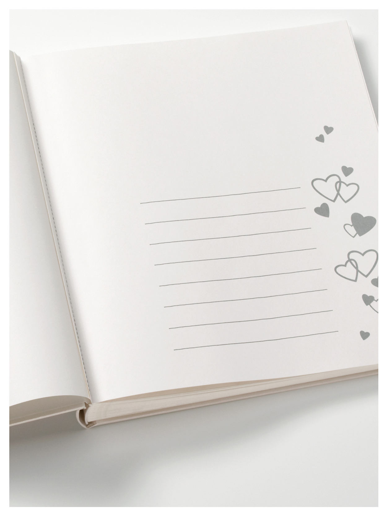 Vakkert bryllupsalbum med permer i lin preget med vakkert mønster. På forsiden er det plass til eget bilde. Albumets første oppslag er vakkert illustrert og har plass til egen tekst fra deres store dag. Et godt valg om du vil ha et album som du vil ha glede av år etter år.