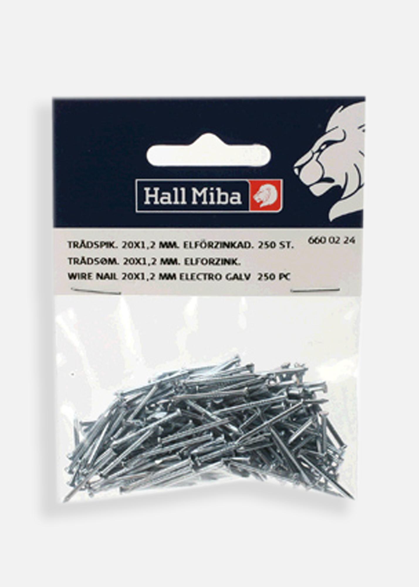 Trådspiker 20x1,2 mm stål elektroforsinket 250 stk